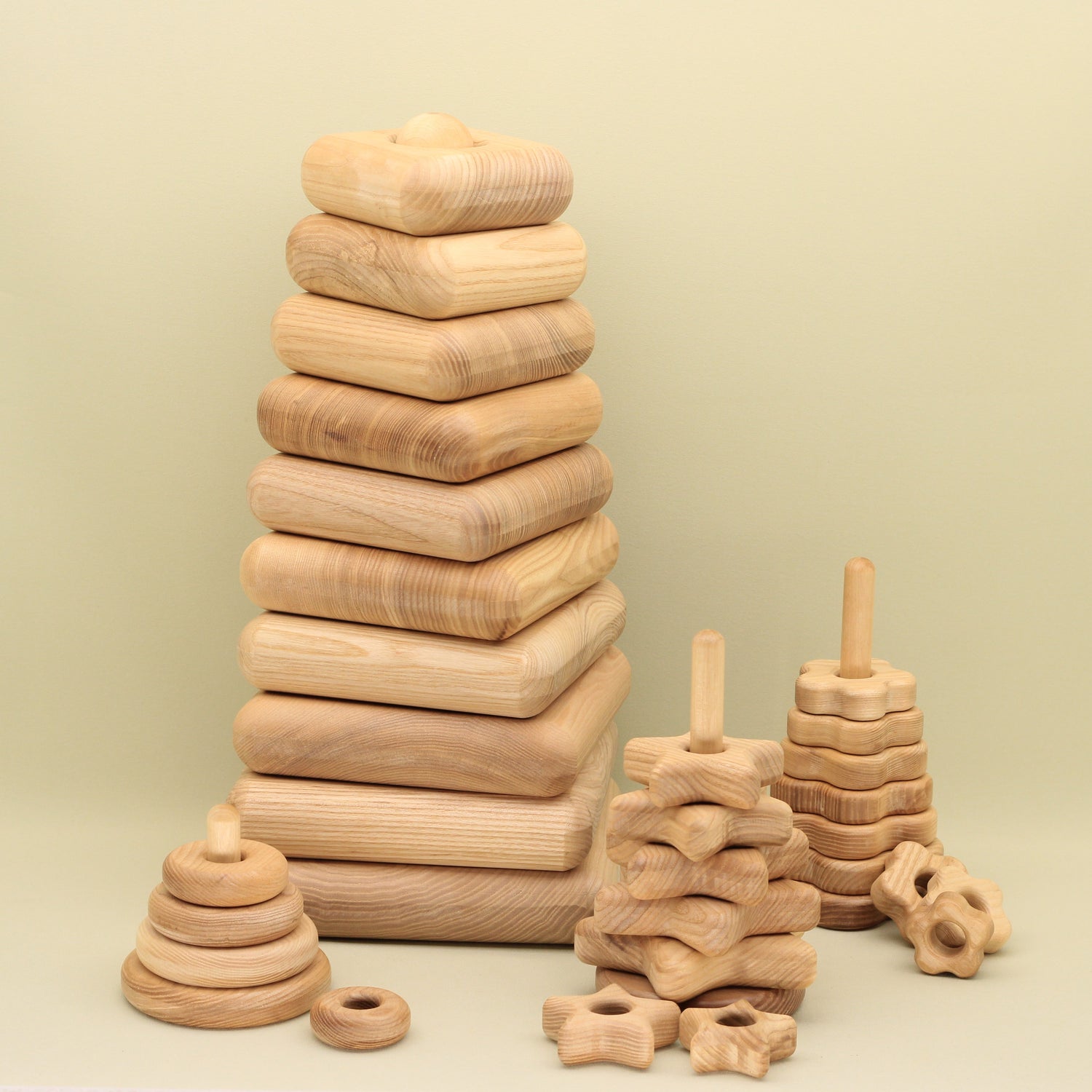 Lotes Toys offers a delightful collection of handmade natural wooden toy pyramids...