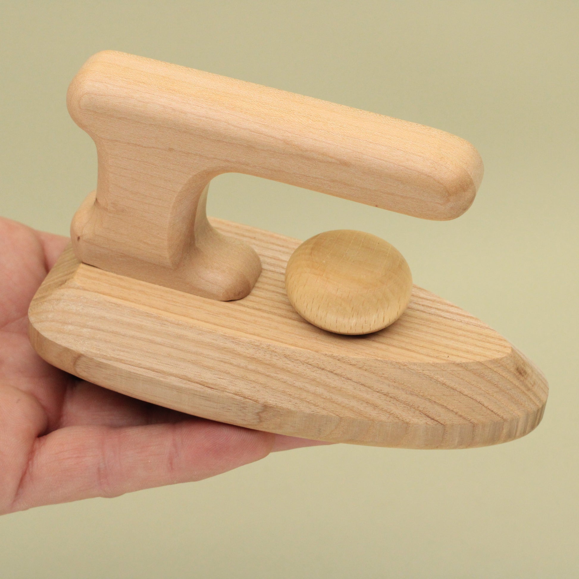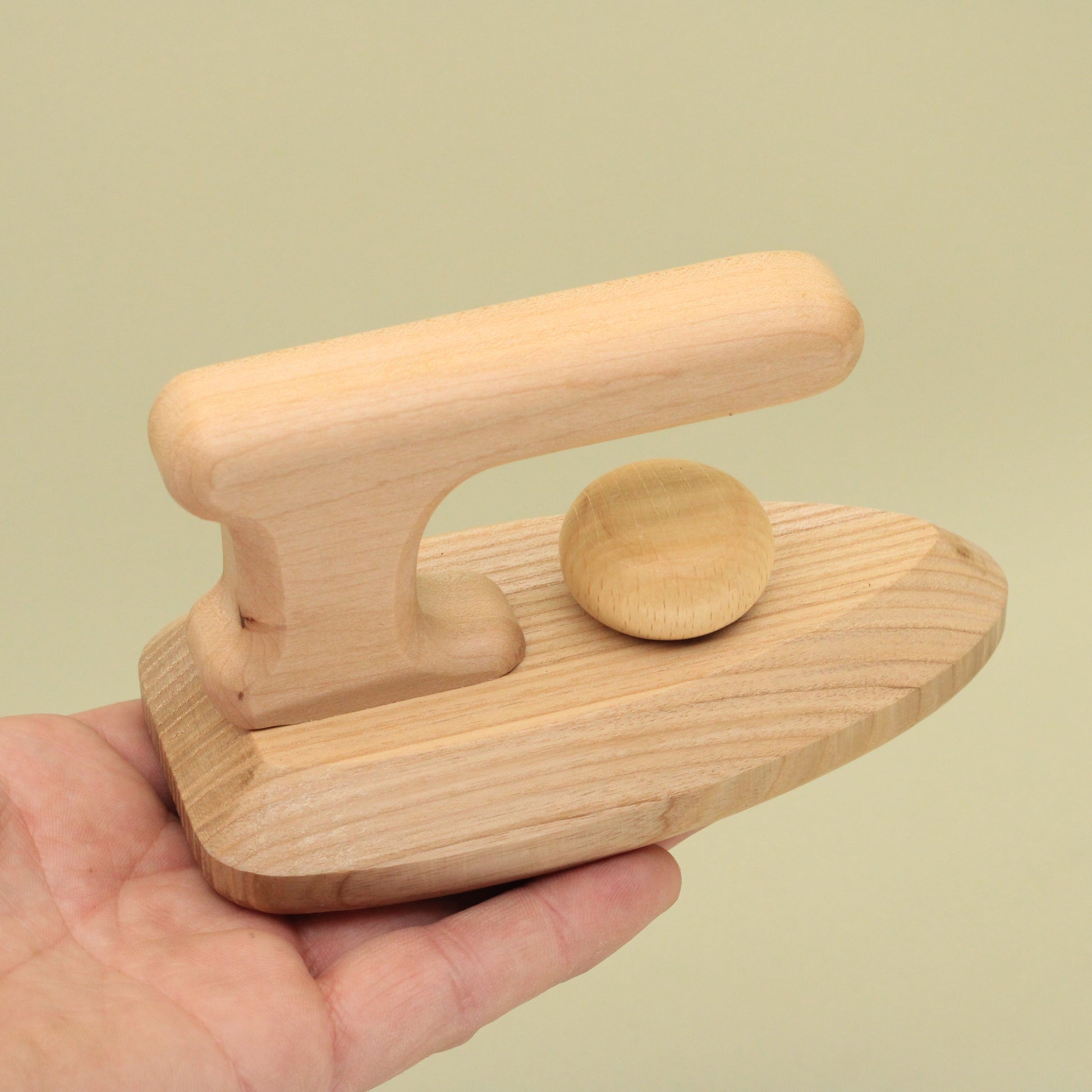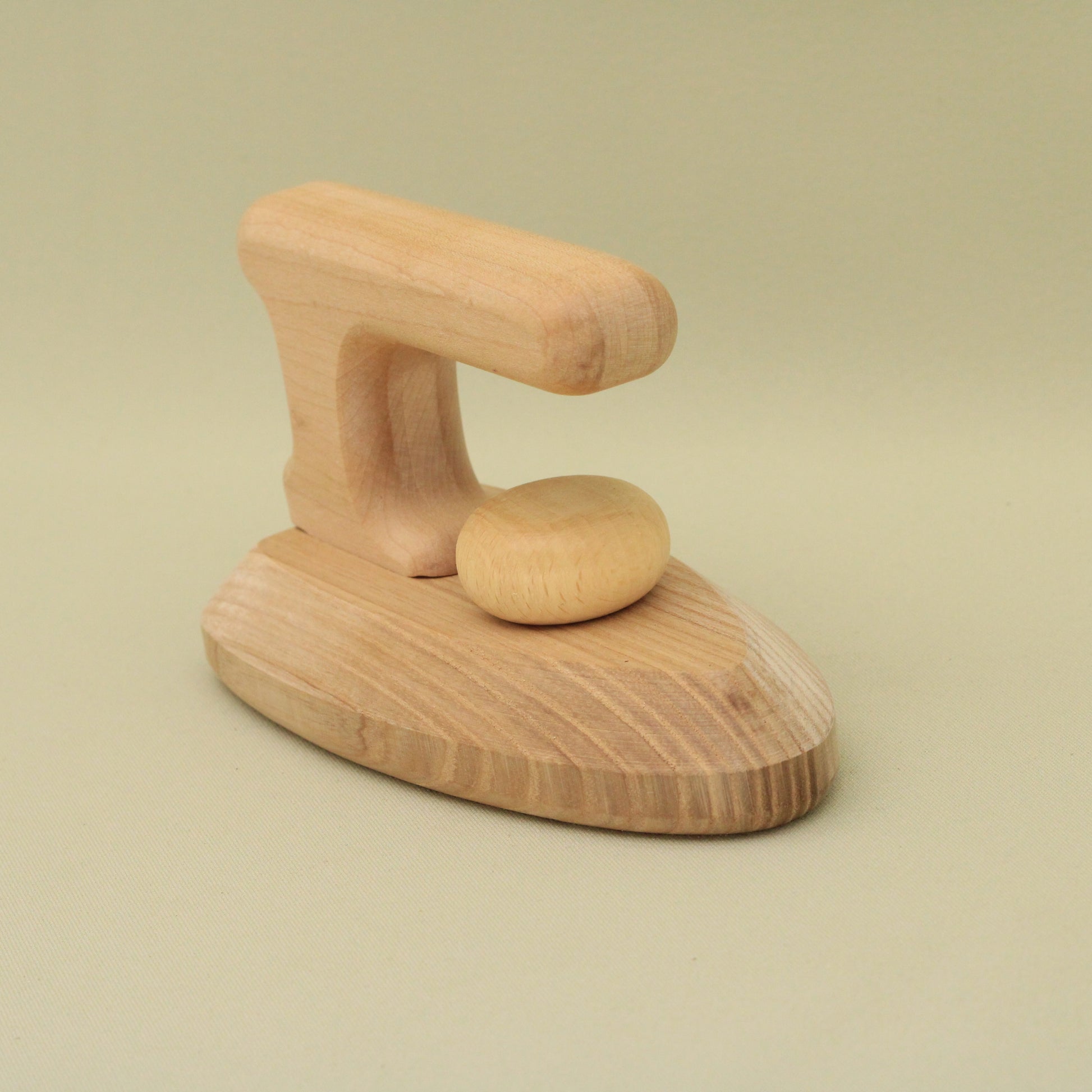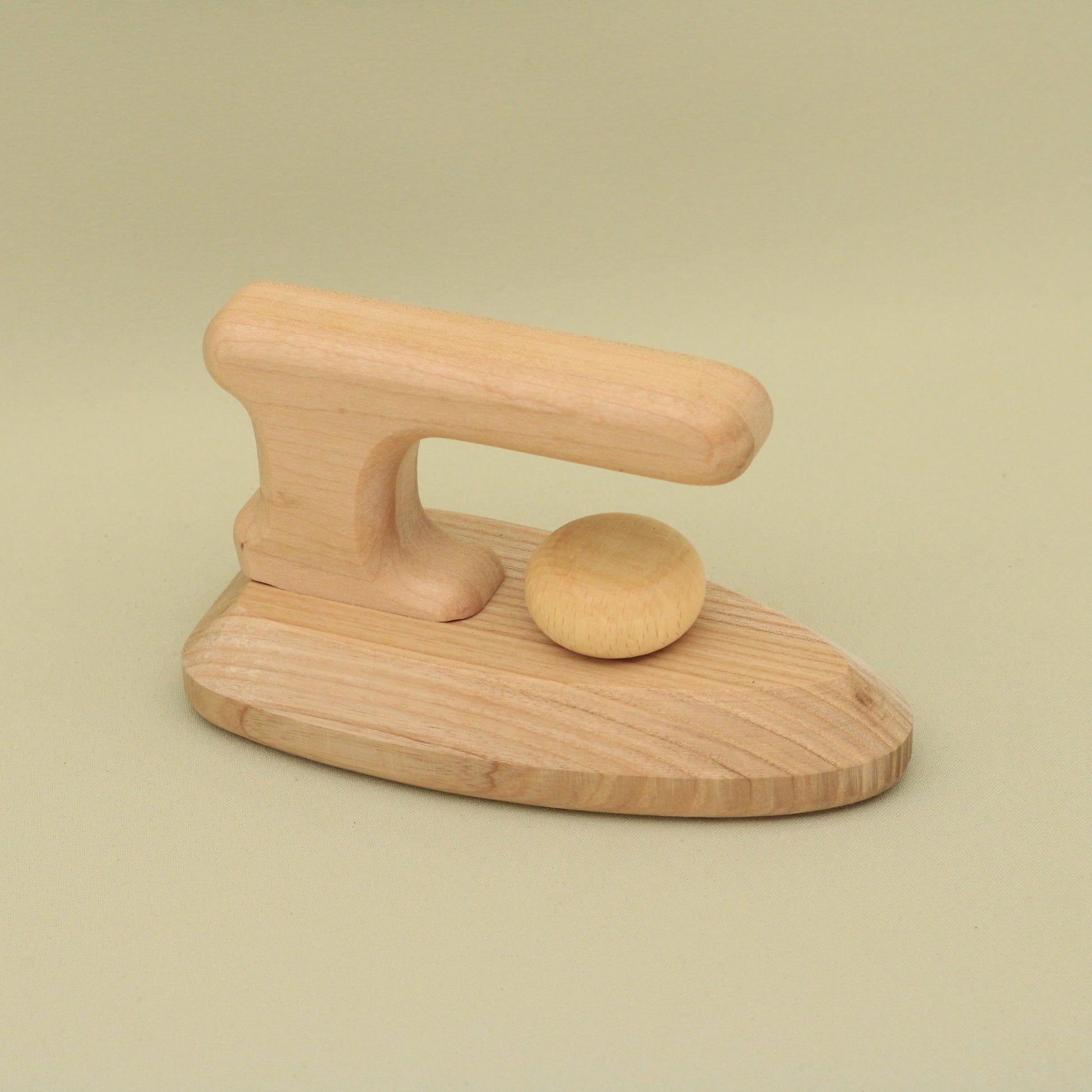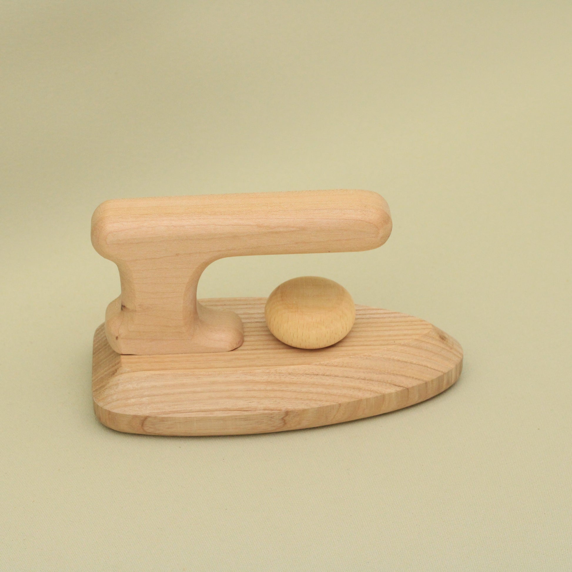Natural Handmade Educational Wooden Toy Selection - The Little Explorer Clothing Iron. Crafted with care, this unique piece is designed to inspire imaginative play for babies, seamlessly blending elements of Waldorf and Montessori educational philosophies.