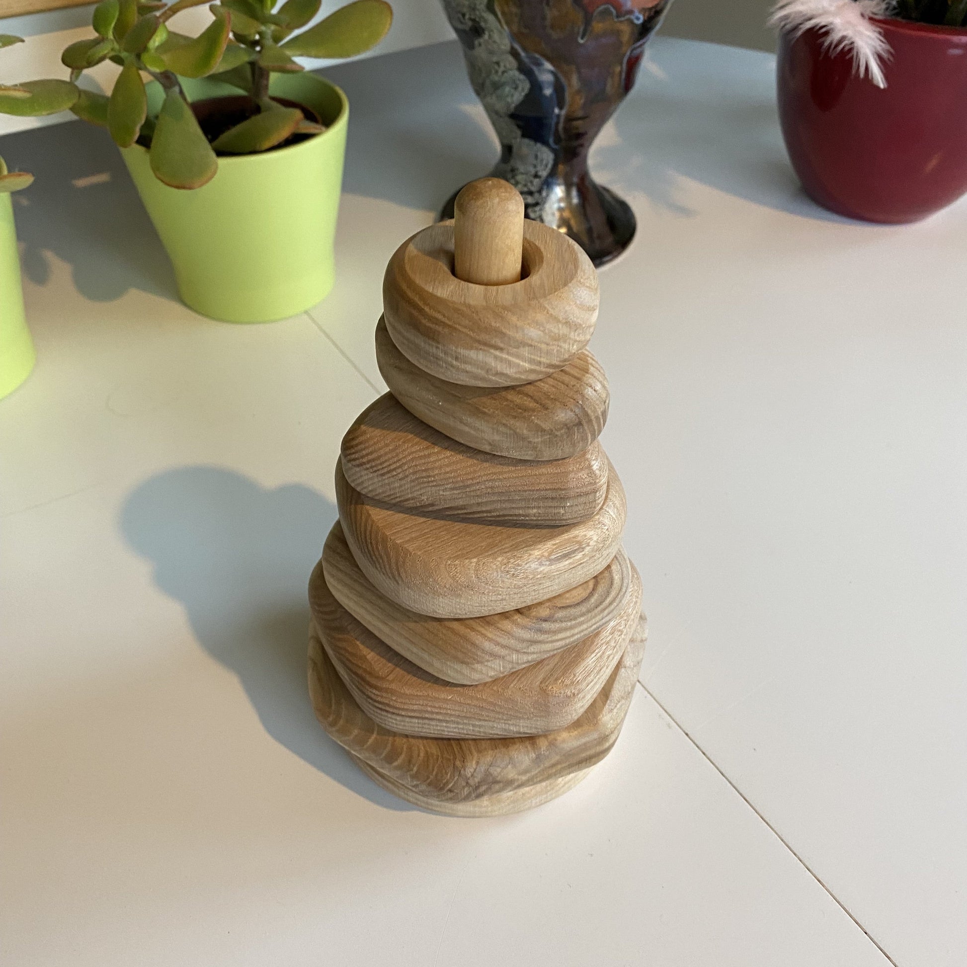 Our Natural Handmade Educational Geometric Wooden Stacking and Building Pyramid is not just a toy; it's a valuable educational tool for your little one's journey of discovery. It introduces babies to the enchanting world of shapes, textures, and motor skills development, all while adhering to the principles of Montessori and Waldorf.