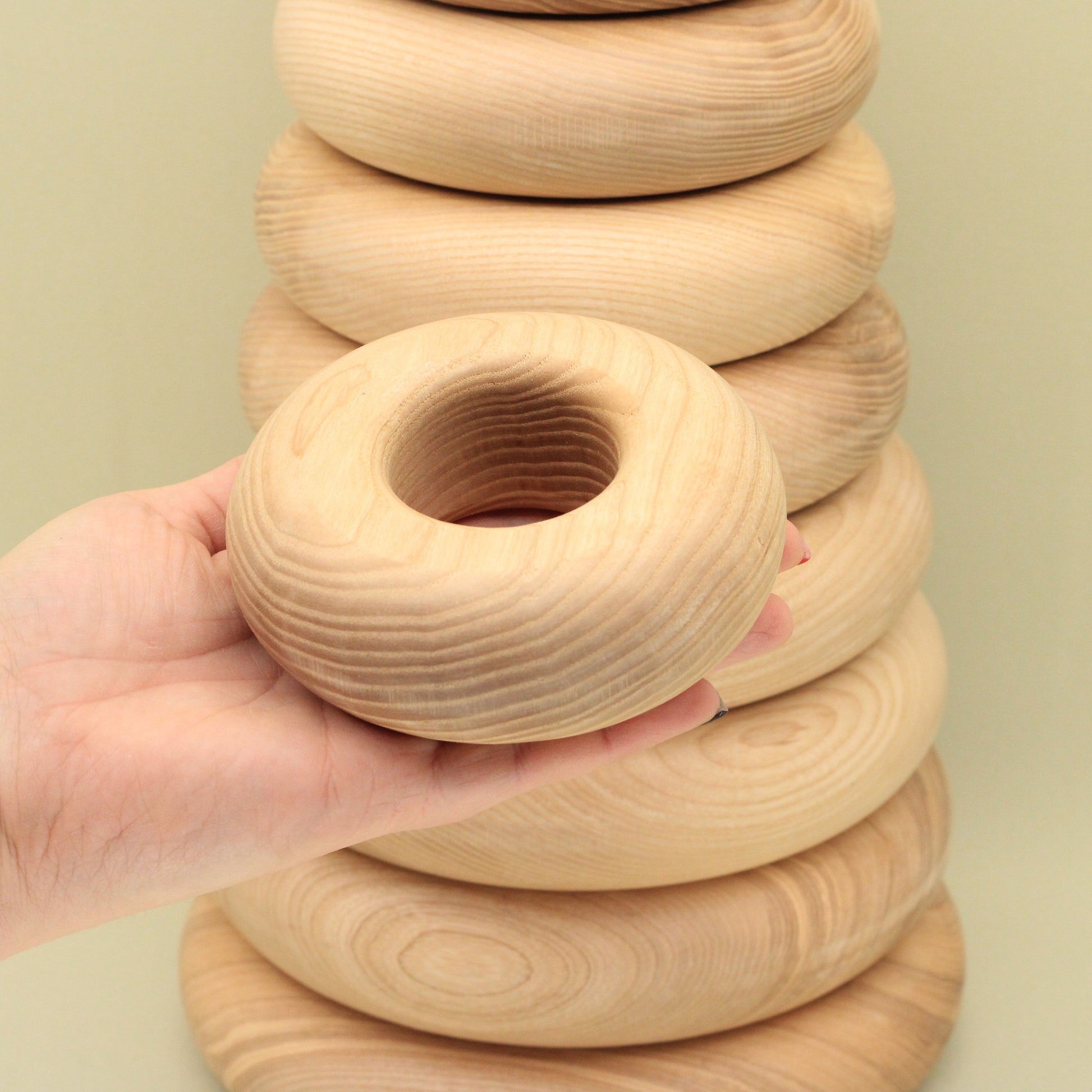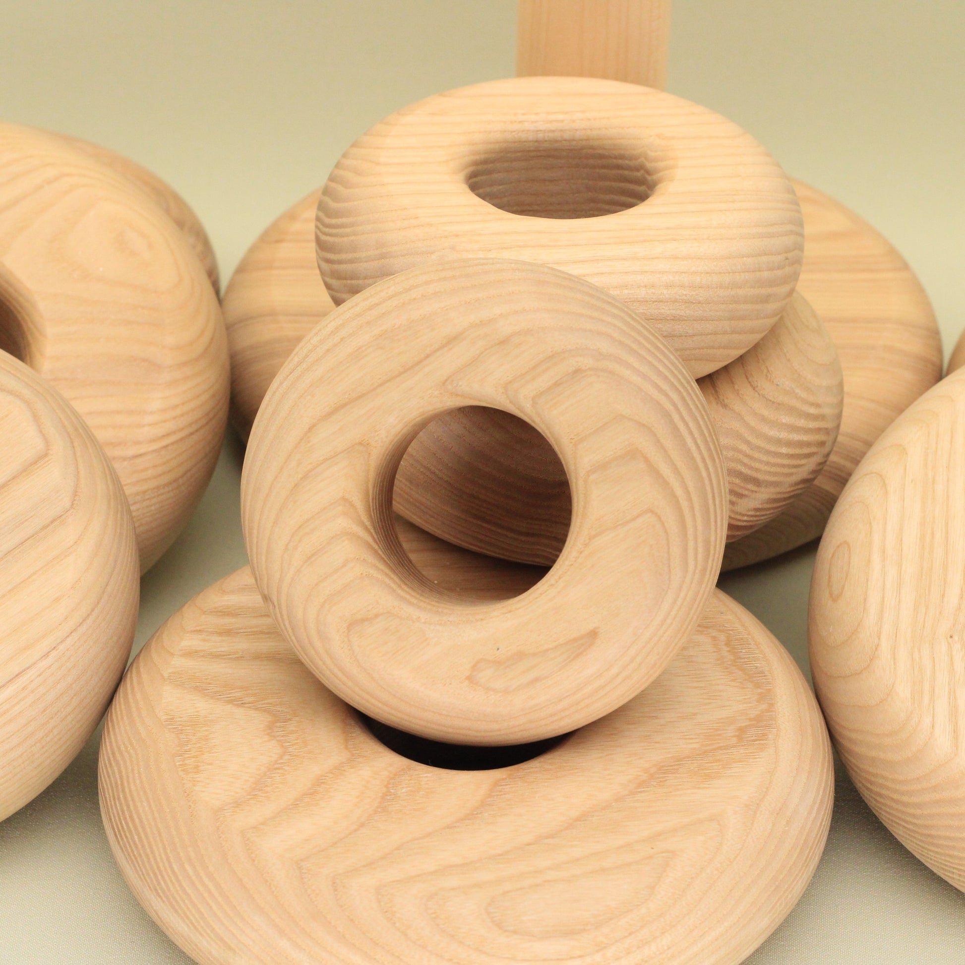 • Package Contents: You'll receive 10 wooden pieces, including a large 20 cm base and nine smaller rings.