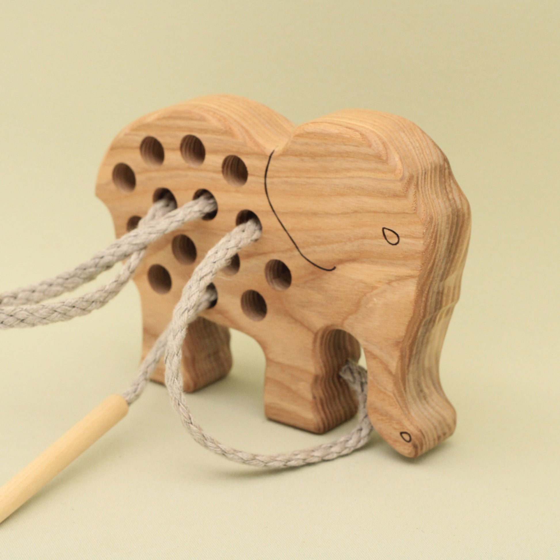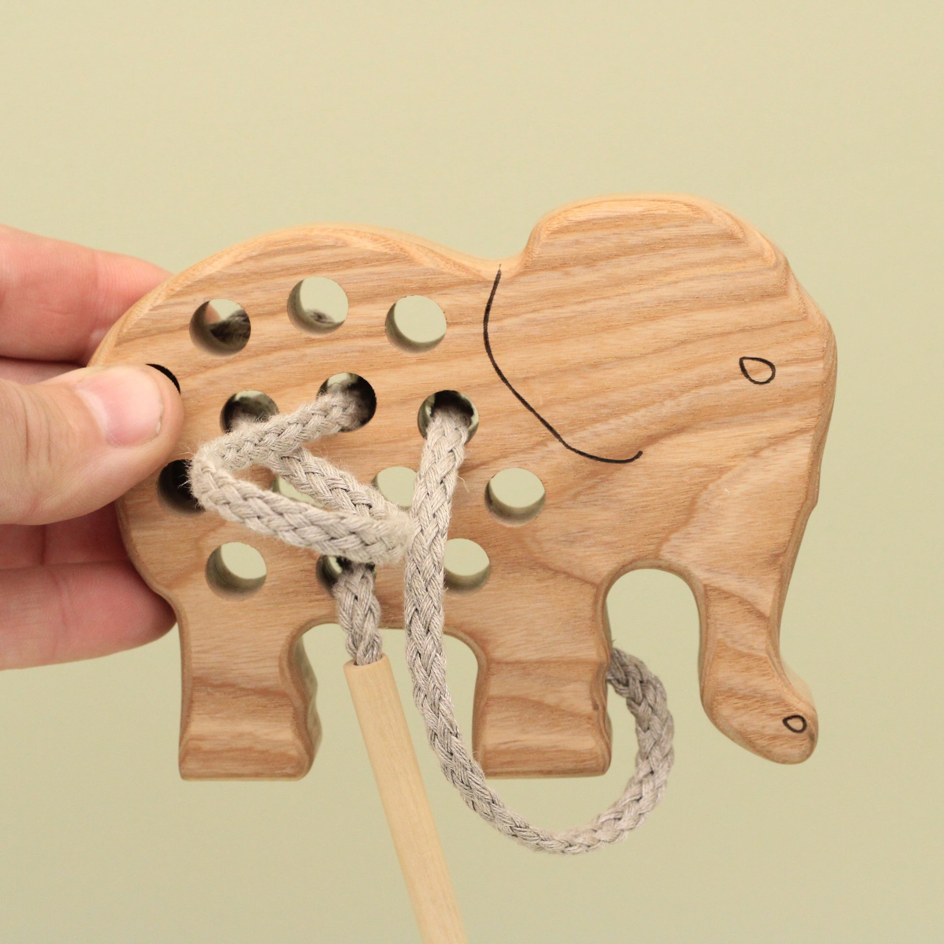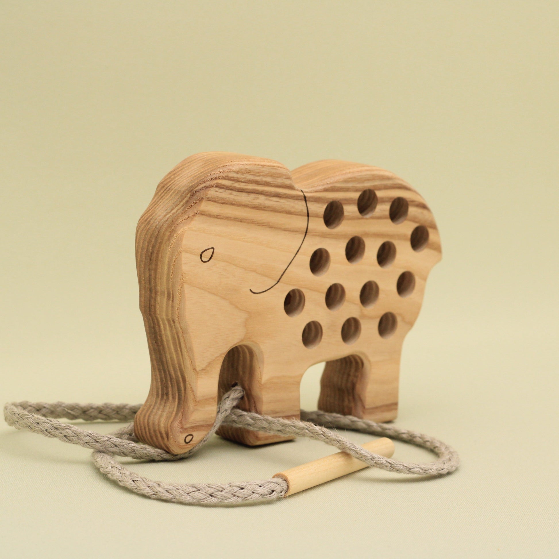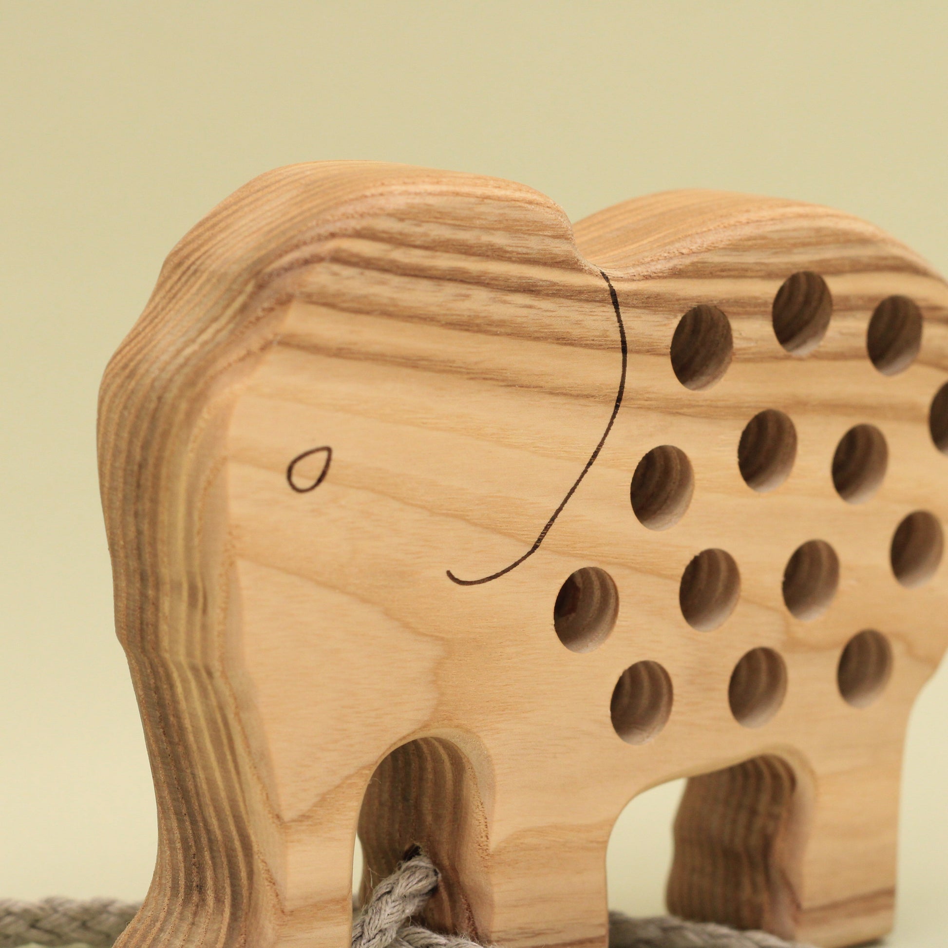 Lotes Toys Natural Wooden Threading Lacing Elephant TT26