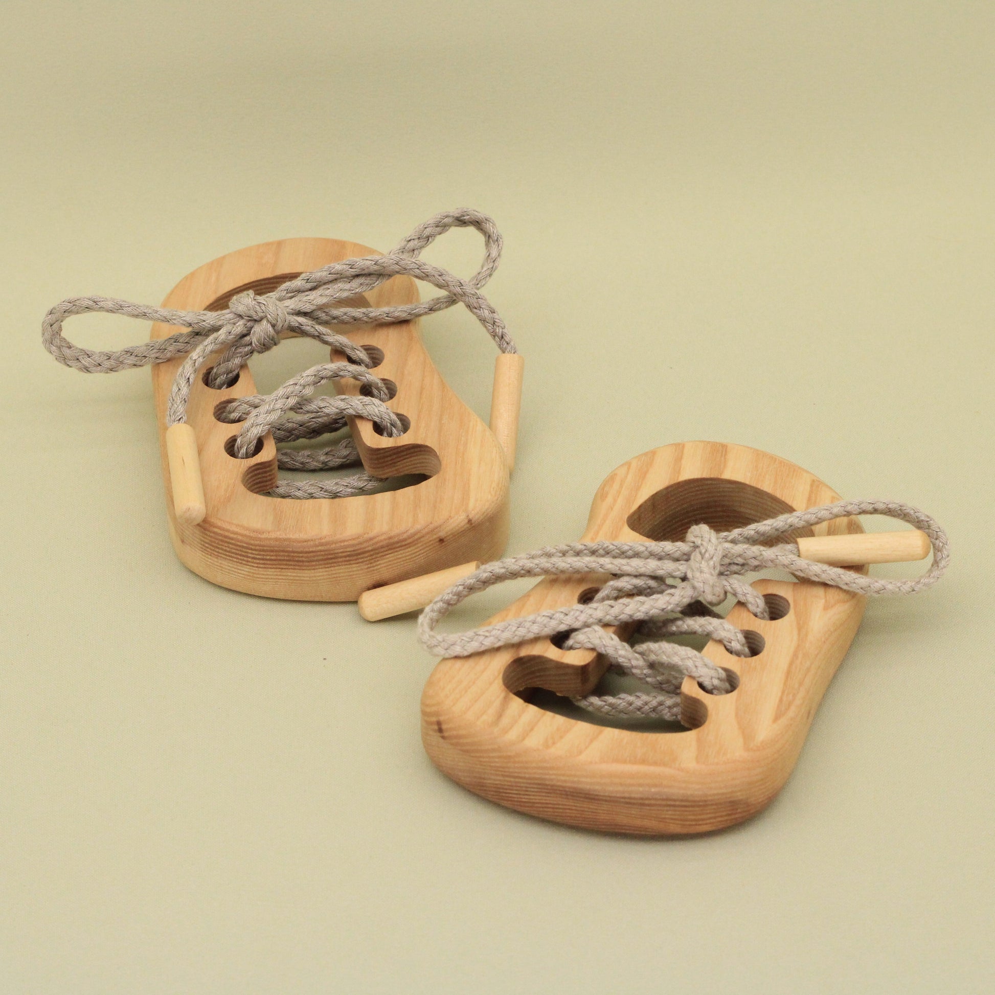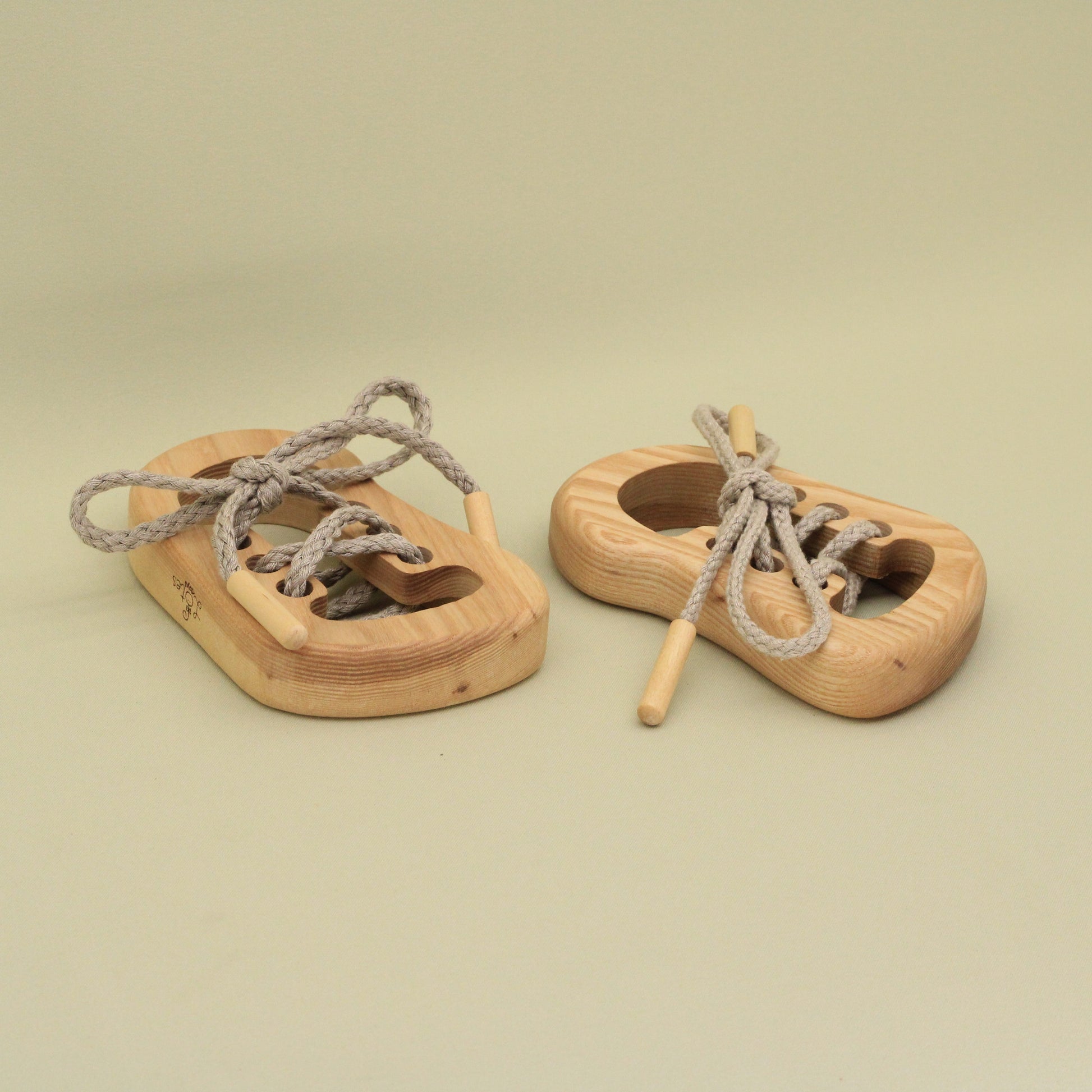 Lotes Toys Natural Wooden Threading Lacing Shoe pair TT19 L,R