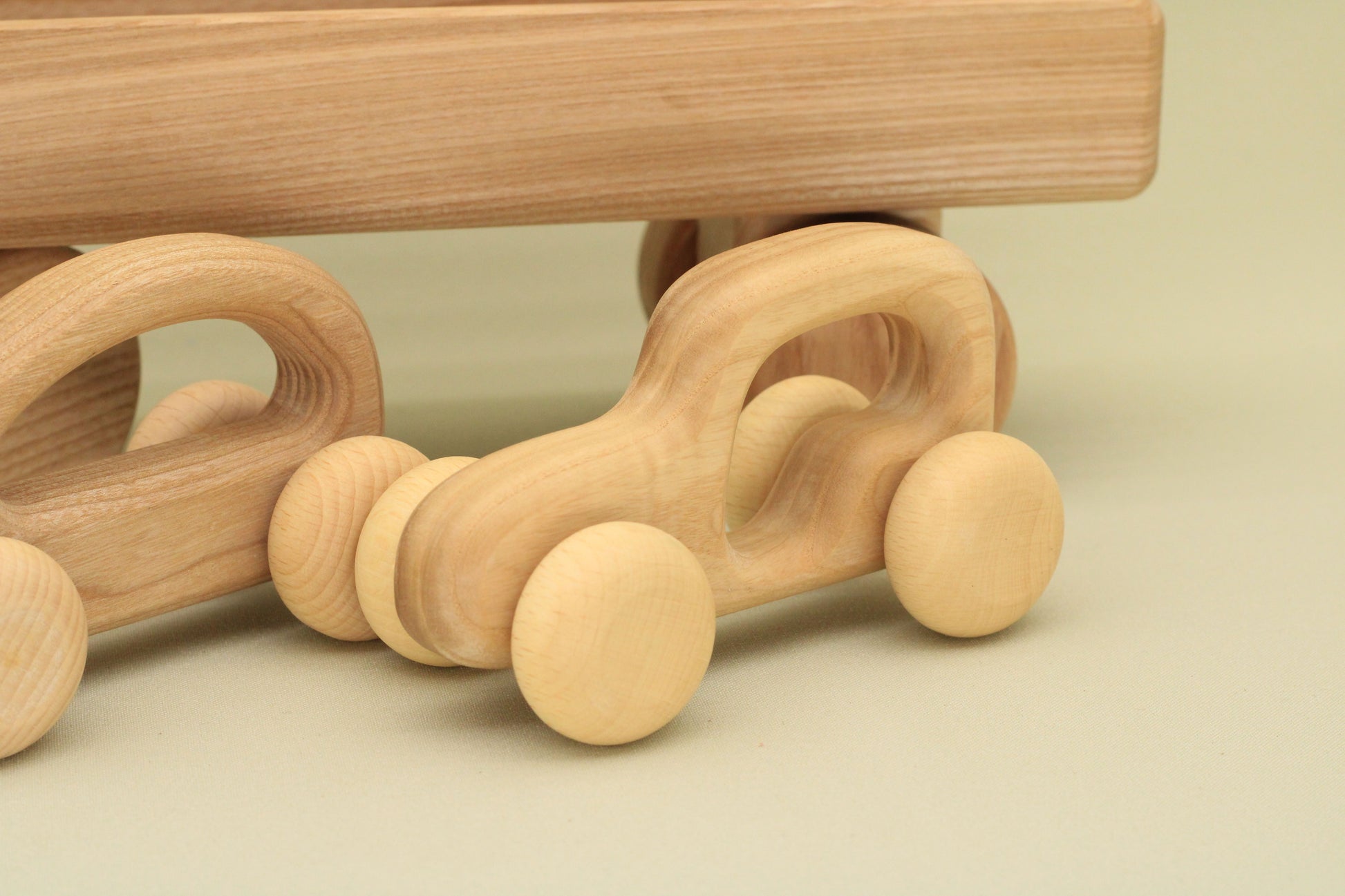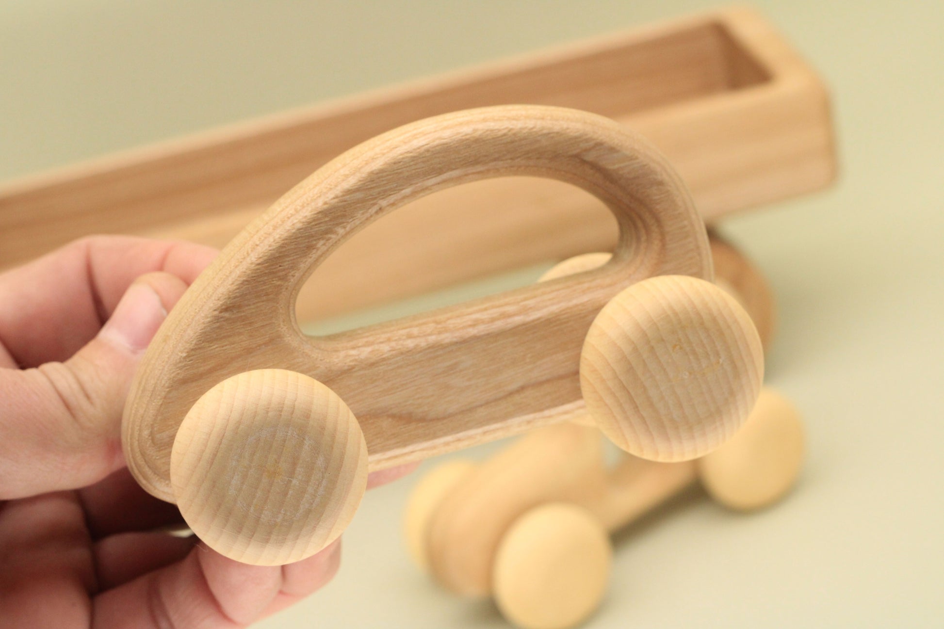 Package Contents: You'll receive one Wooden Car with a detachable Trailer and 2 small cars, sparking joy and curiosity in your child's playtime.