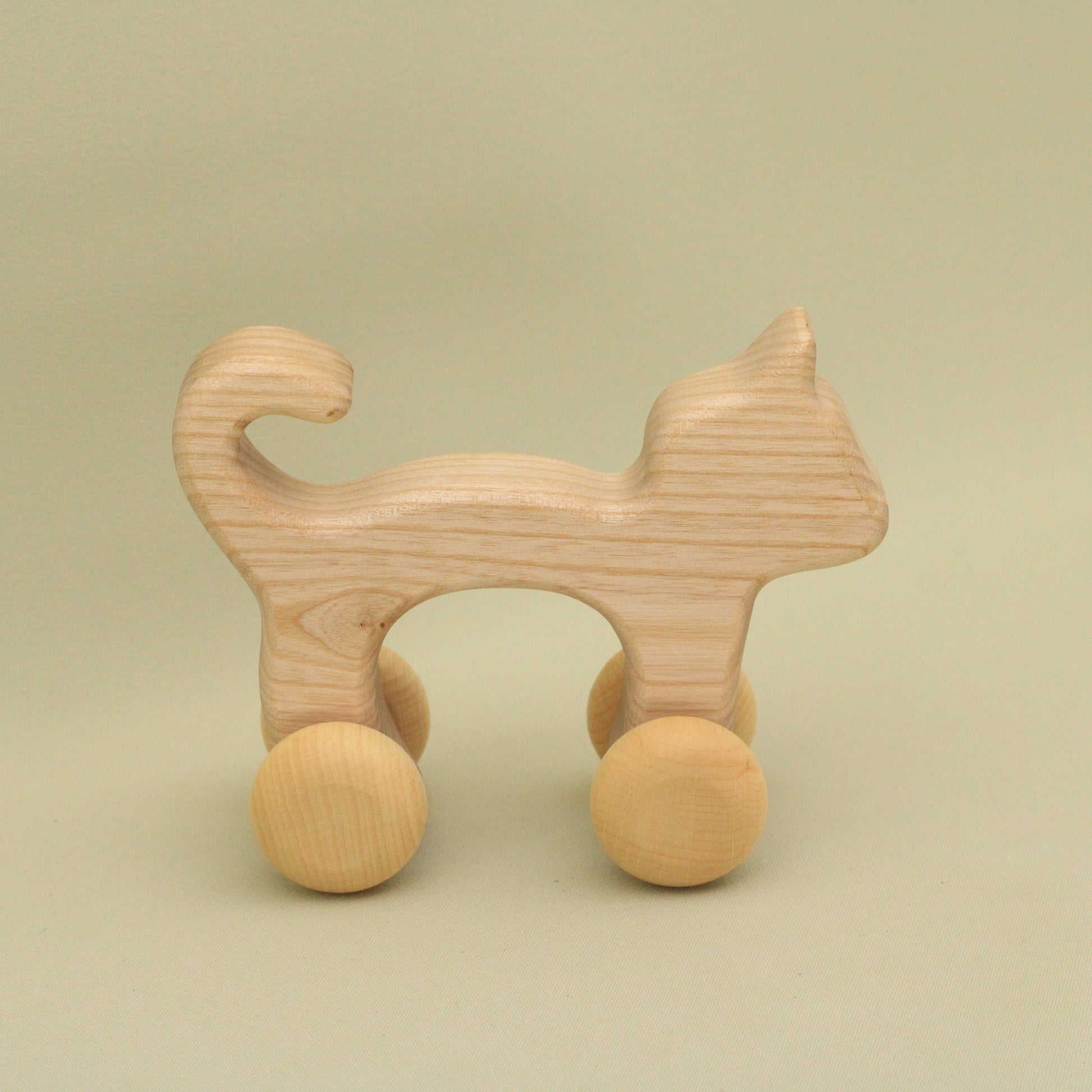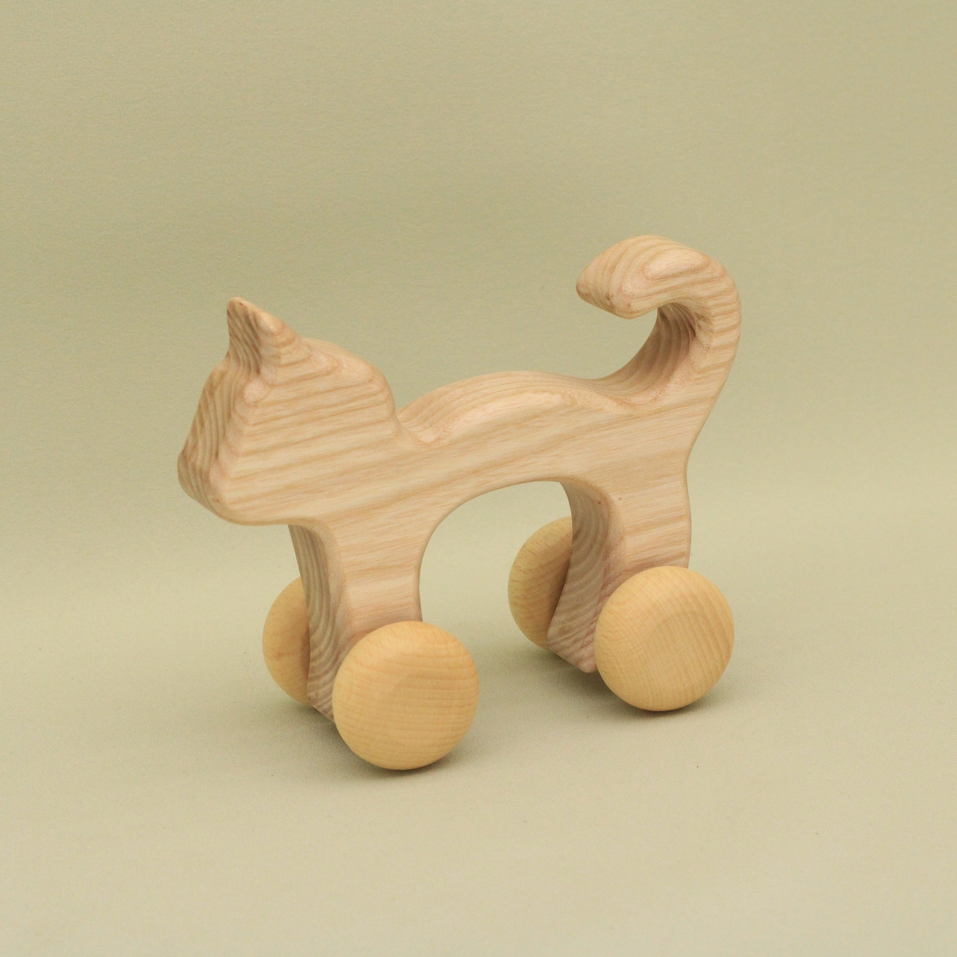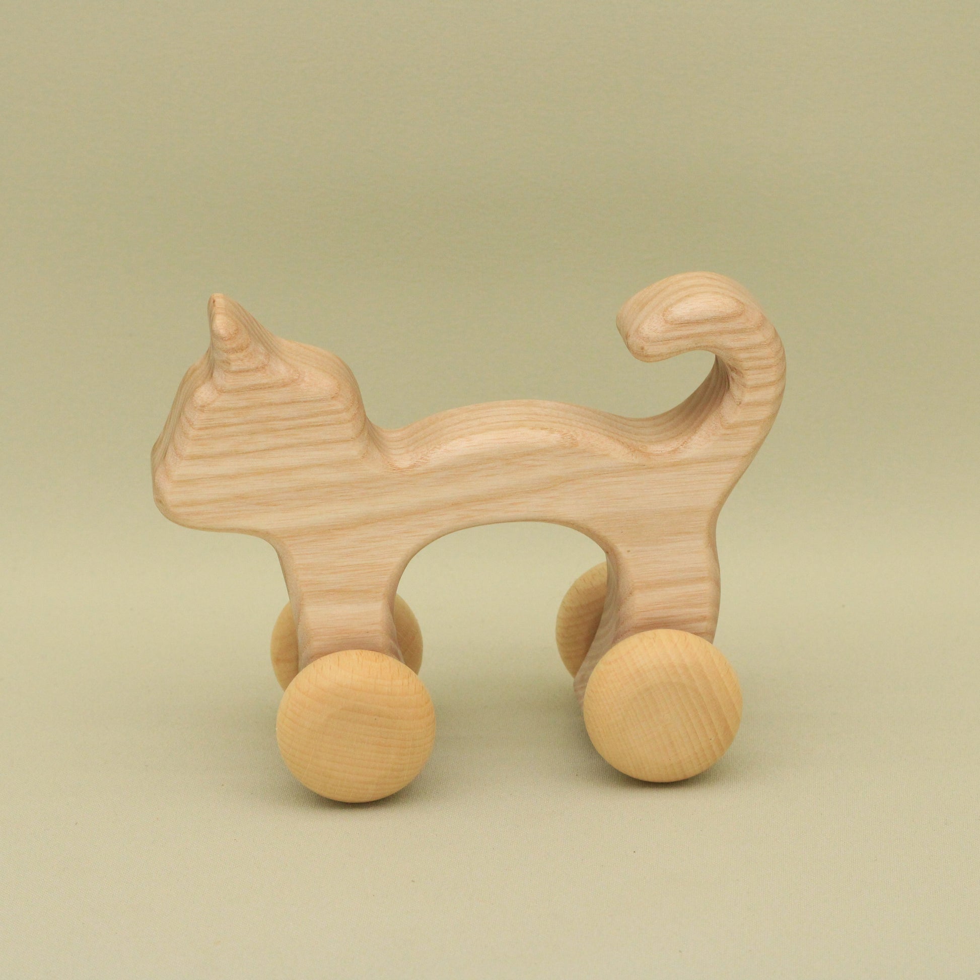 Organic wooden toys crafted with care by skilled artisans, each Wooden Wheelie Animal Cat is a unique masterpiece, adding a touch of timeless craftsmanship to your child's playtime. The smooth, hand-polished surface ensures a safe and tactile play environment for little hands.