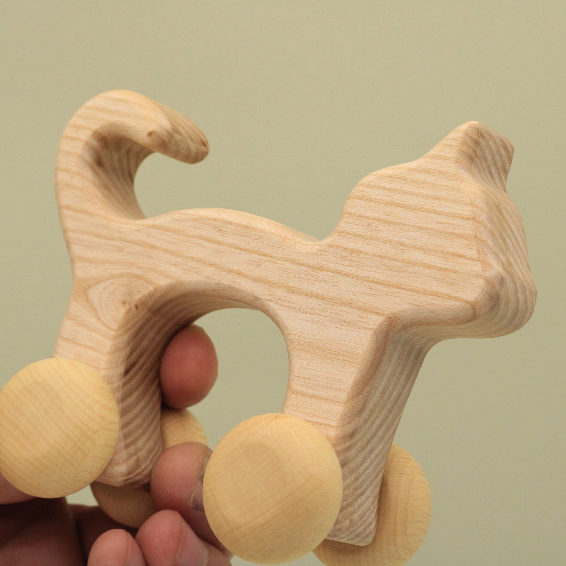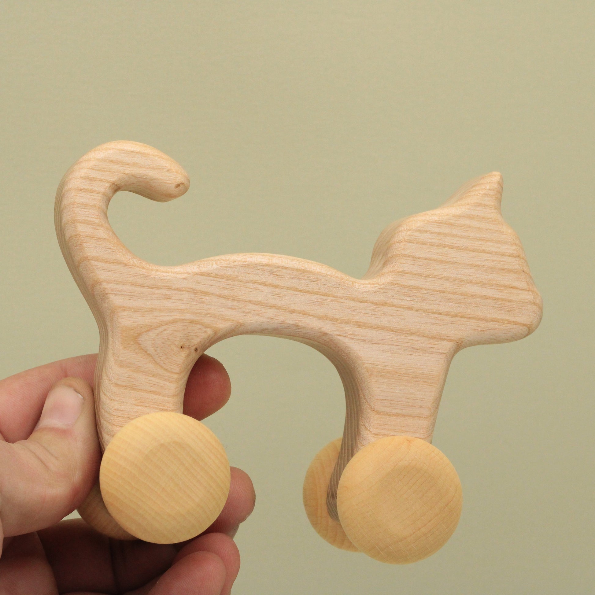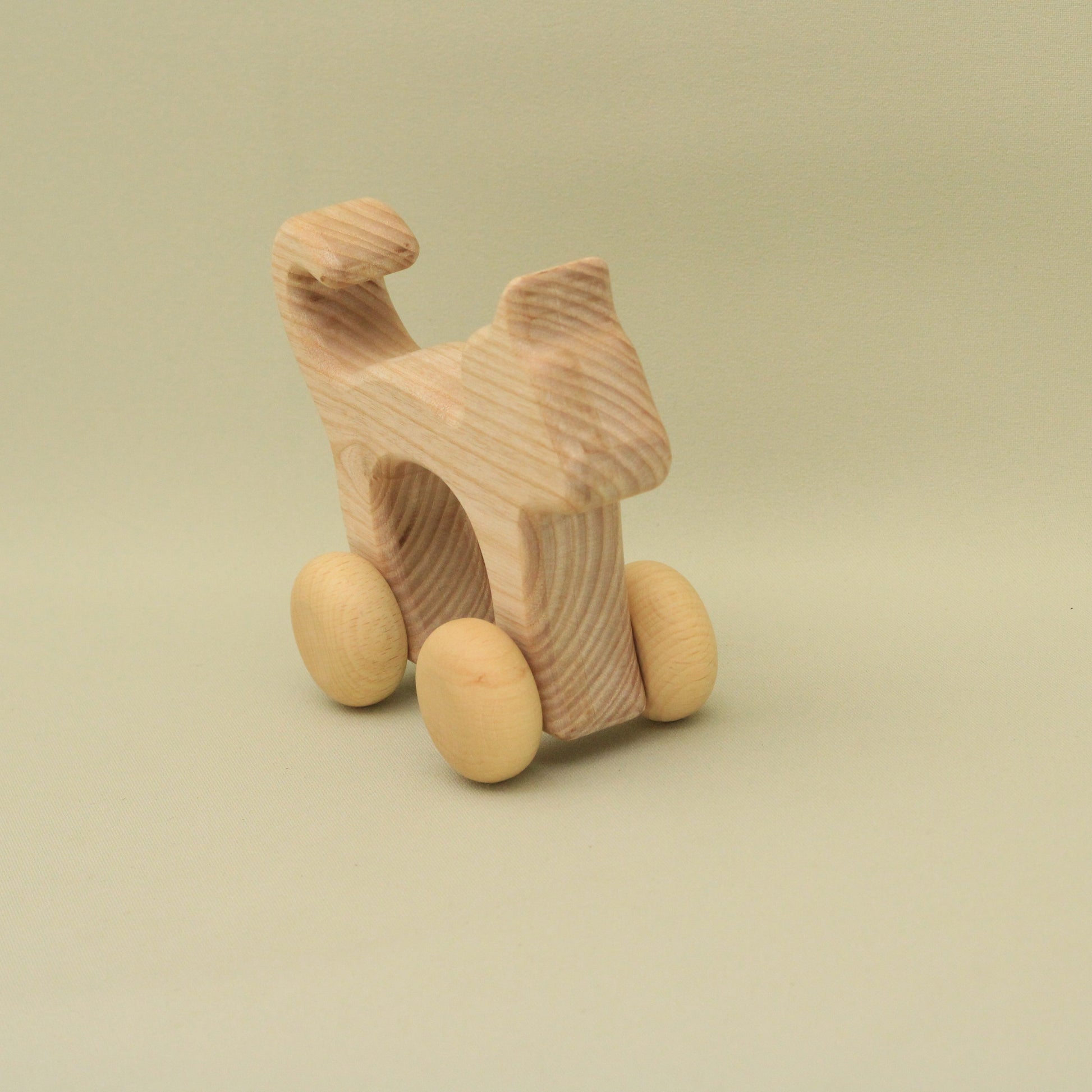 Organic wooden toys crafted with care by skilled artisans, each Wooden Wheelie Animal Cat is a unique masterpiece, adding a touch of timeless craftsmanship to your child's playtime. The smooth, hand-polished surface ensures a safe and tactile play environment for little hands.