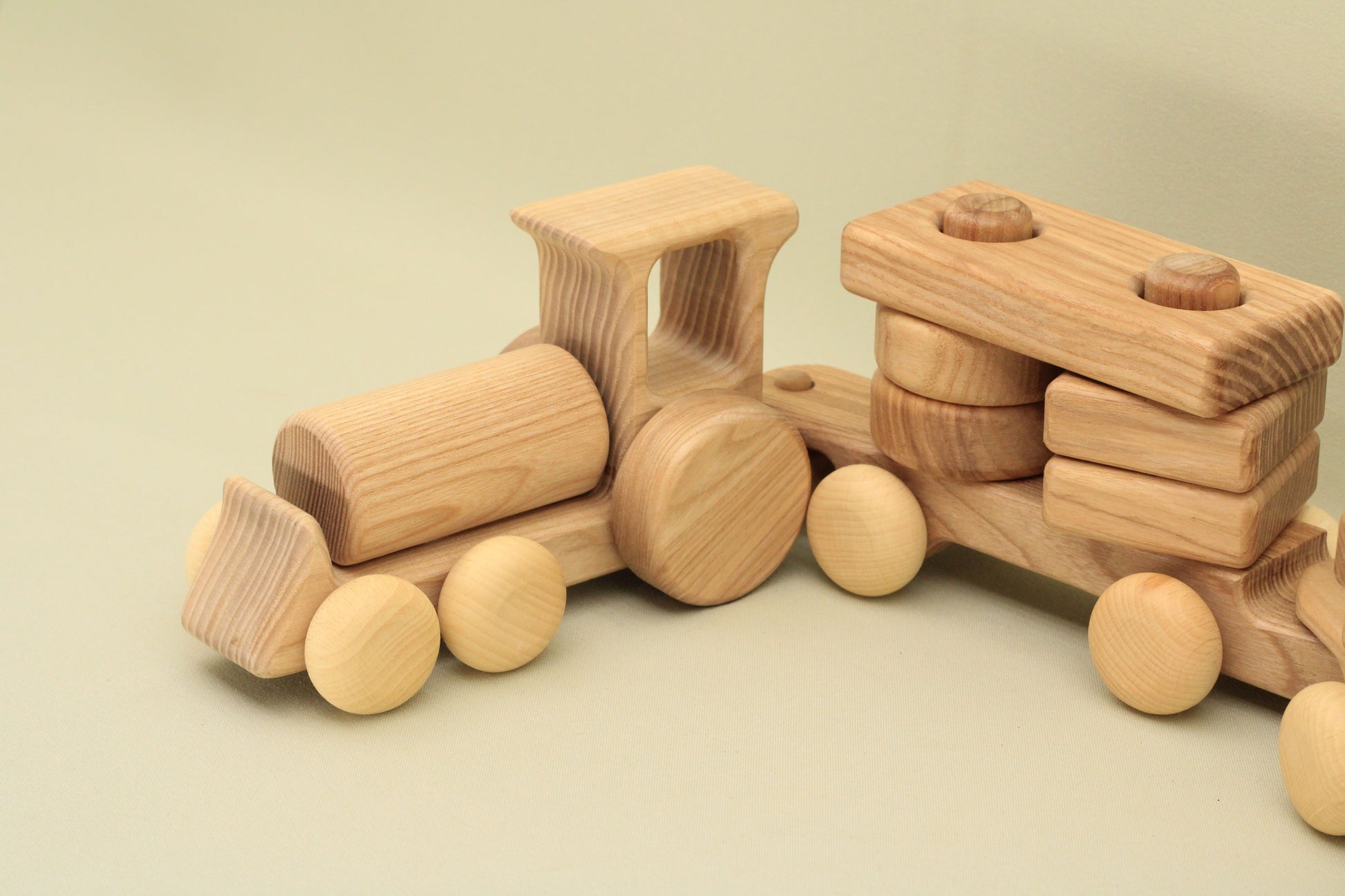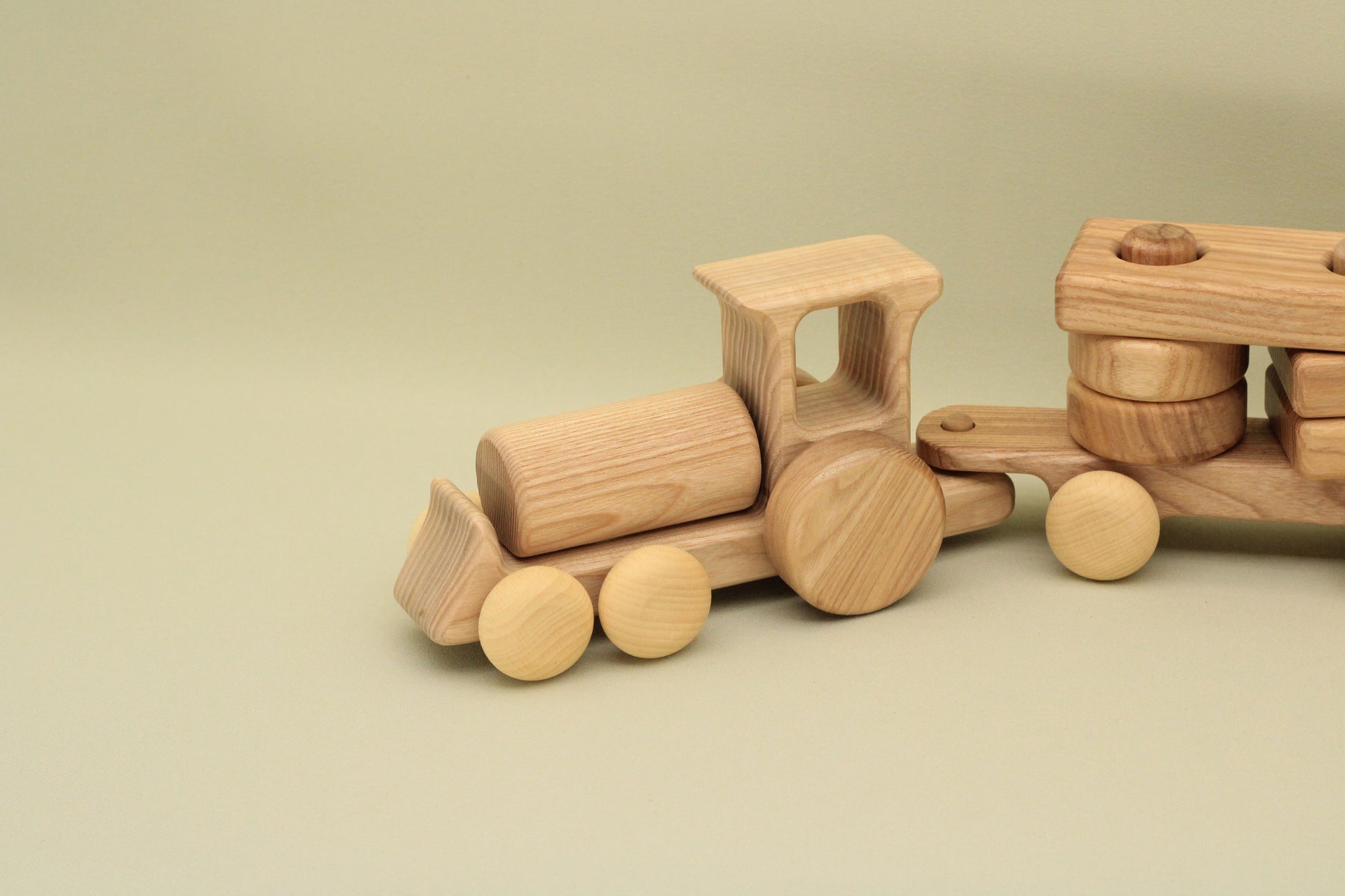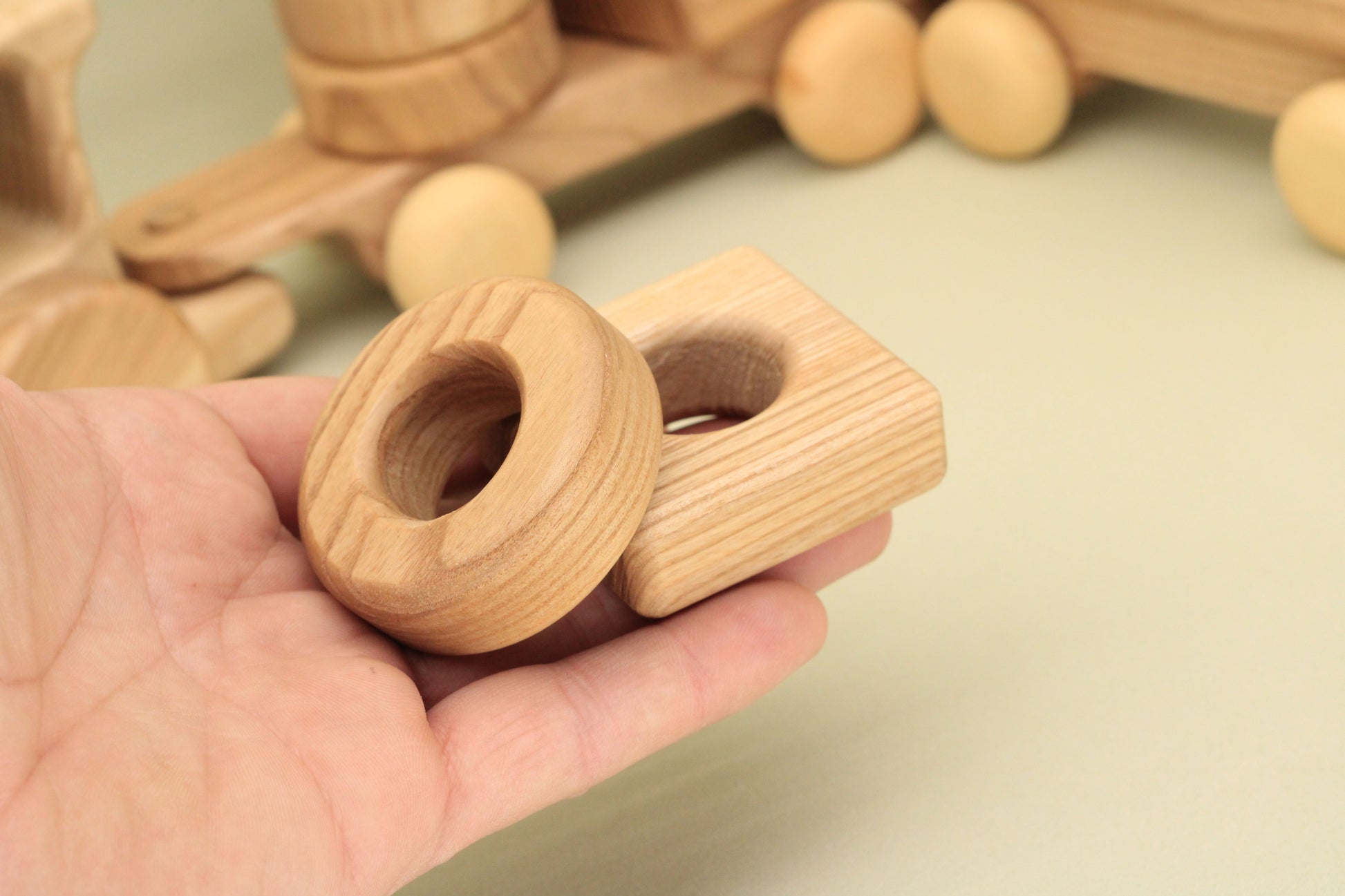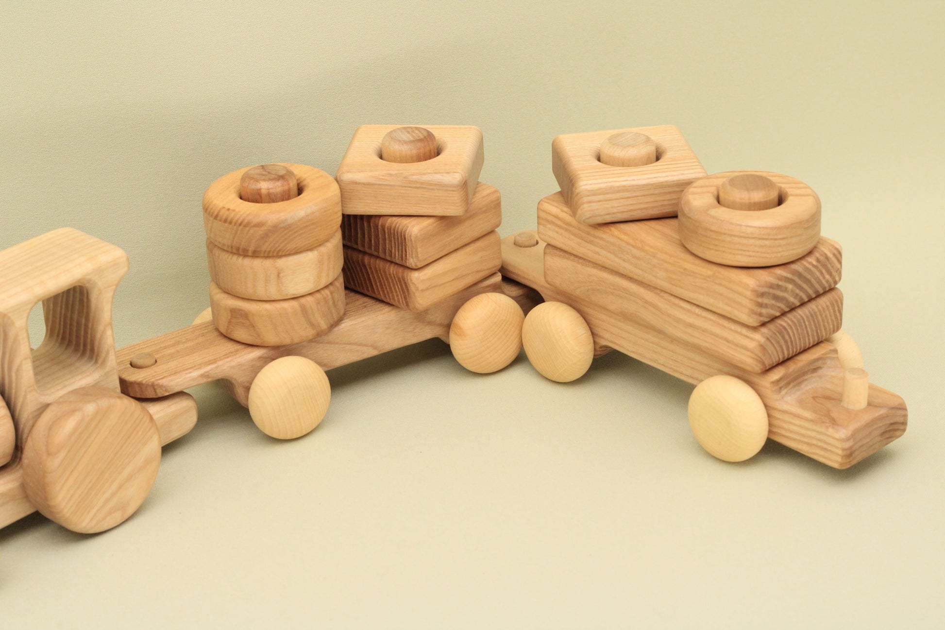 Wooden Stacking Train: Handmade, Educational, Montessori, Locomotive + 2 Wagons, 17 Building Blocks