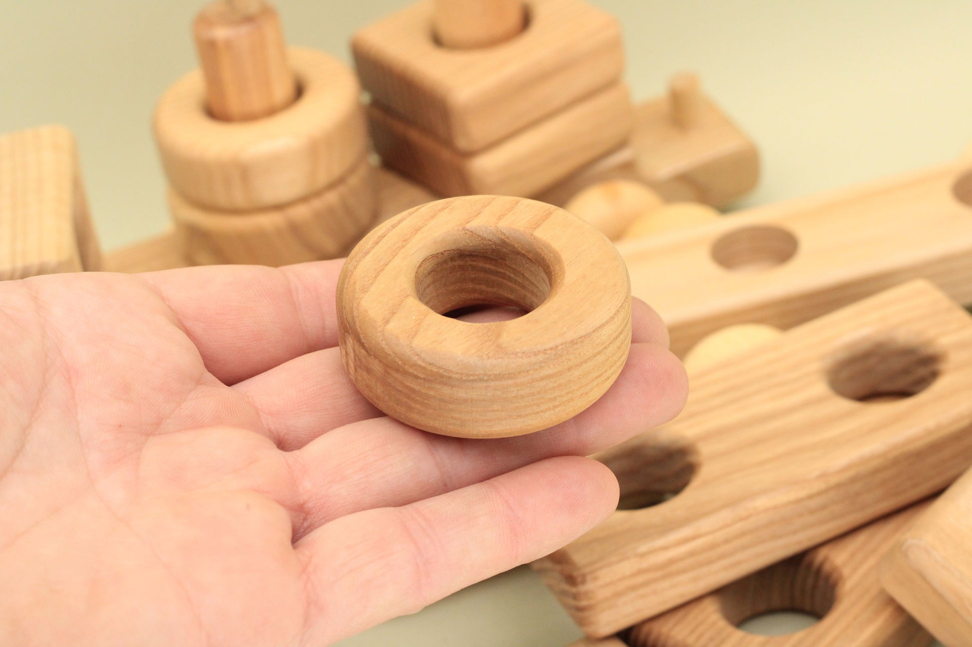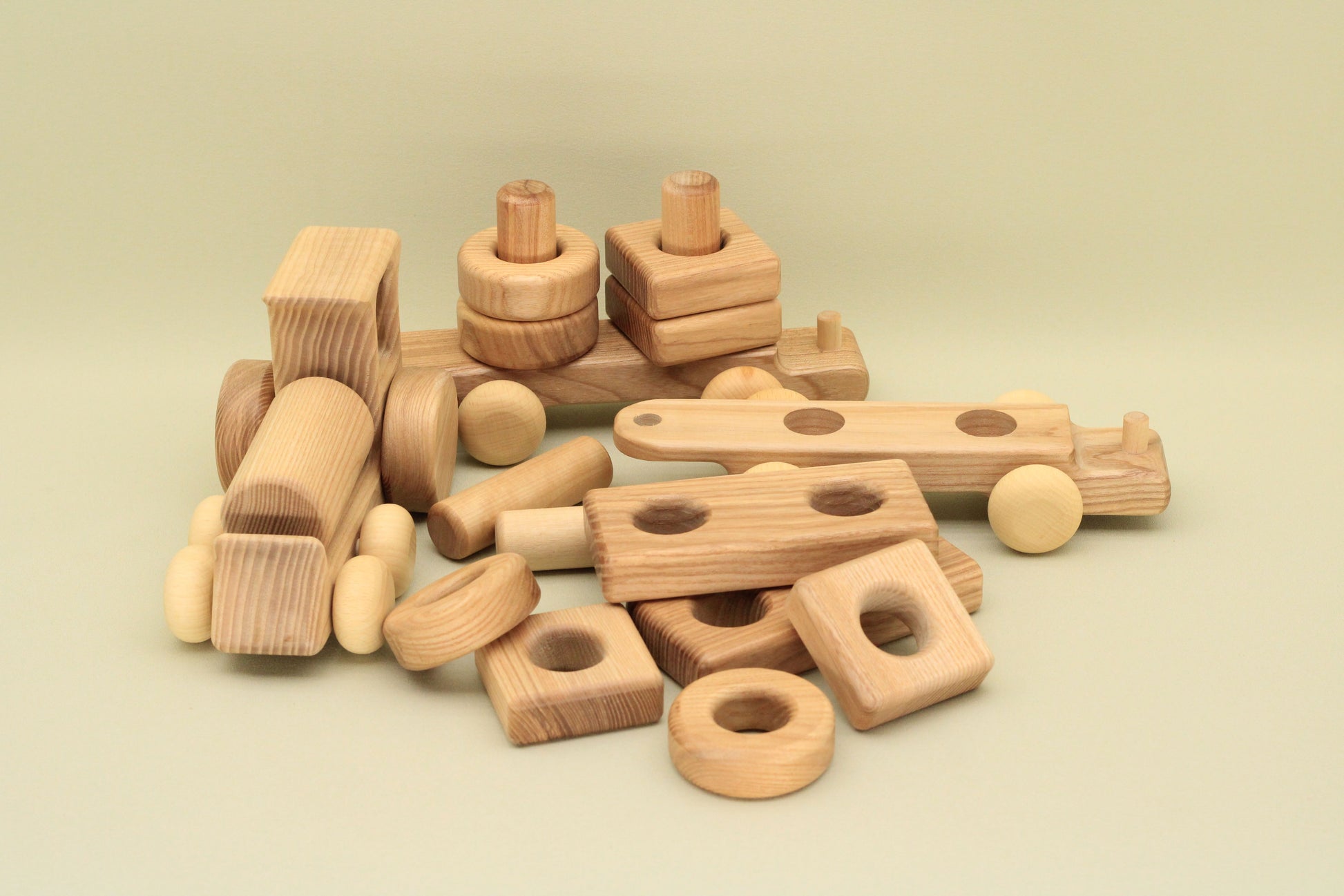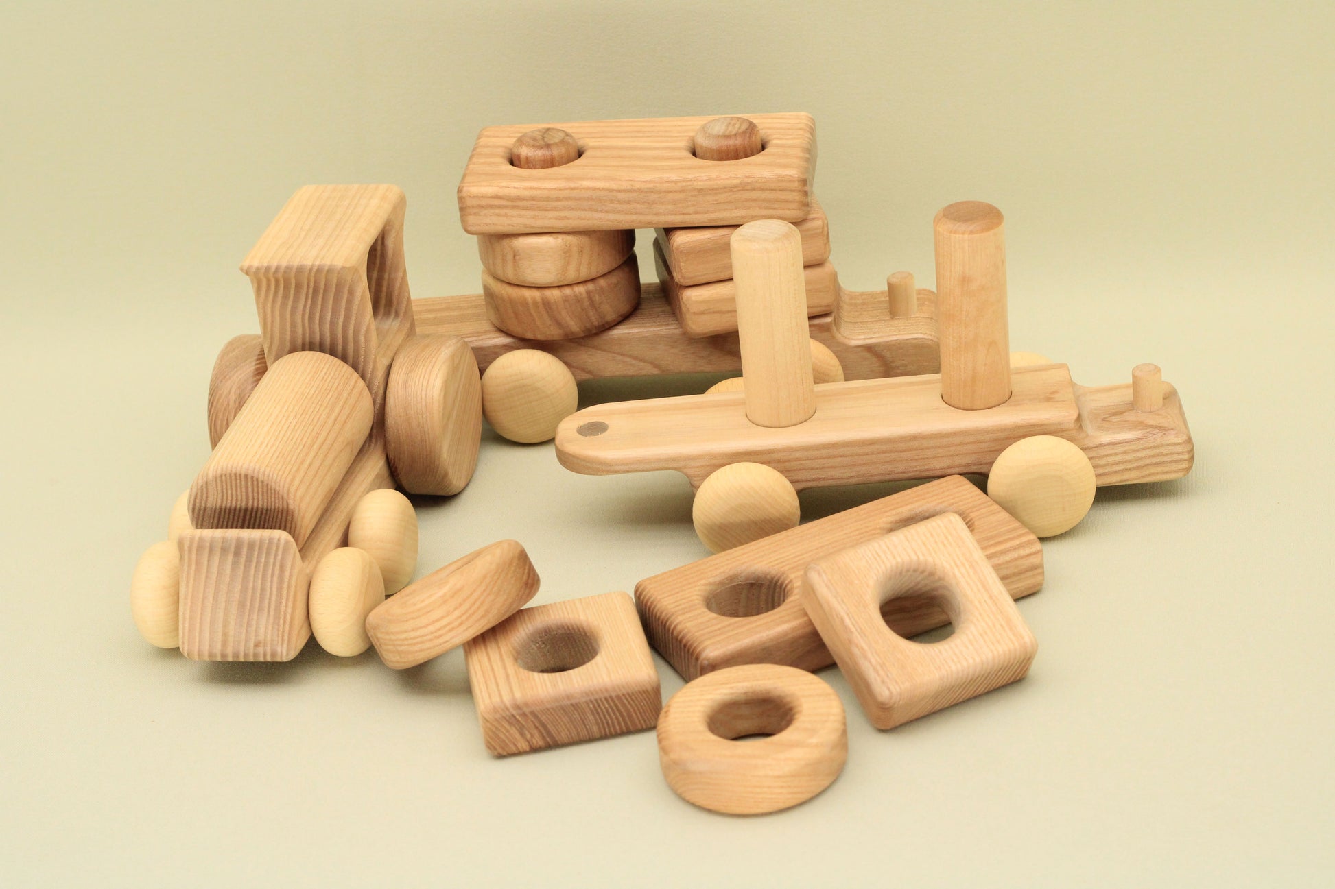 • Package Contents: You'll receive 3 wooden toy wagons and a generous assortment of 17 wooden building and stacking parts.