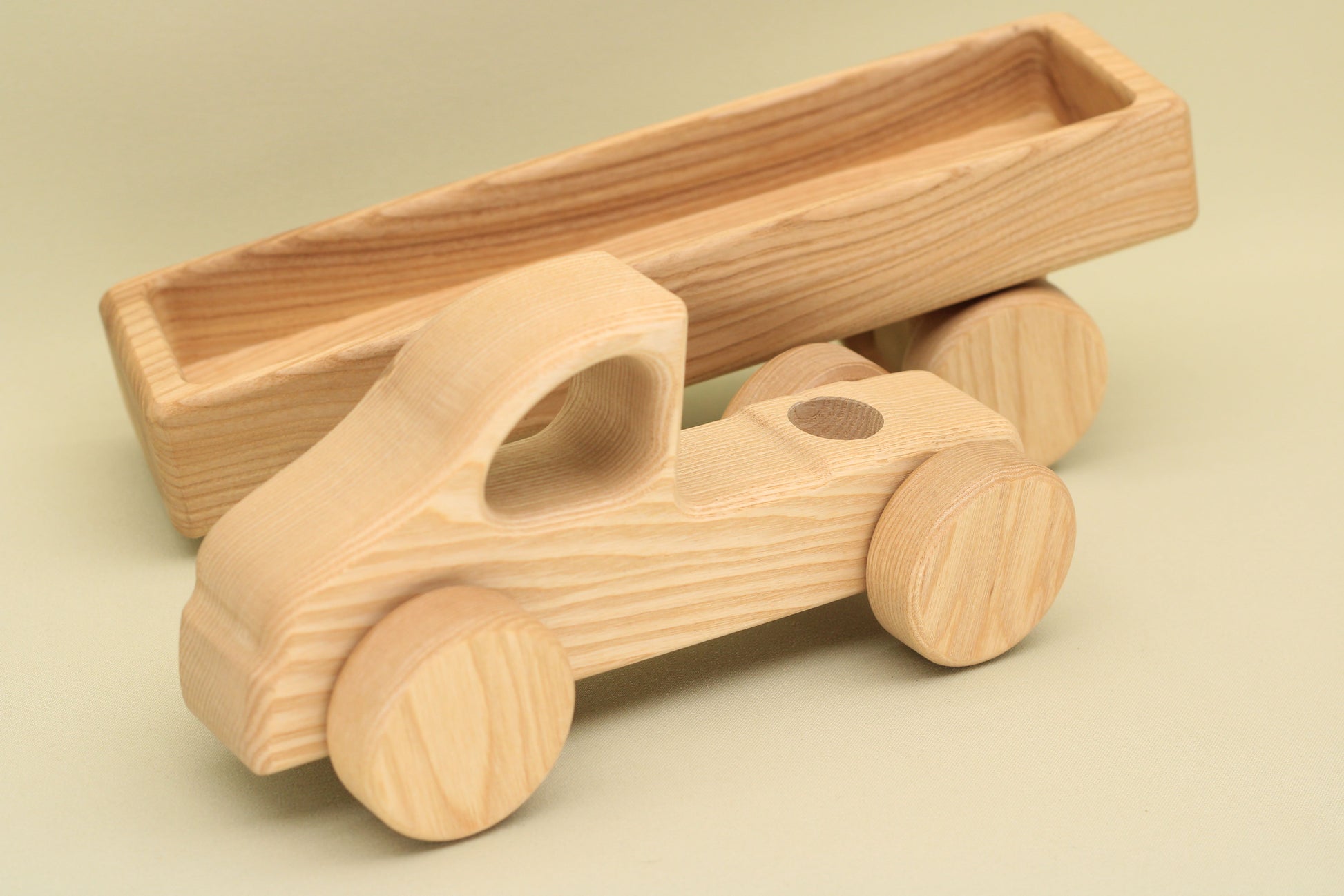 |• Perfect Gift for Little Ones: Whether for a birthday, holiday, or special occasion, this organic Wooden toy Car with Trailer makes a perfect gift for little boys and girls. It's a timeless addition to any toy collection, promoting both fun and educational value.