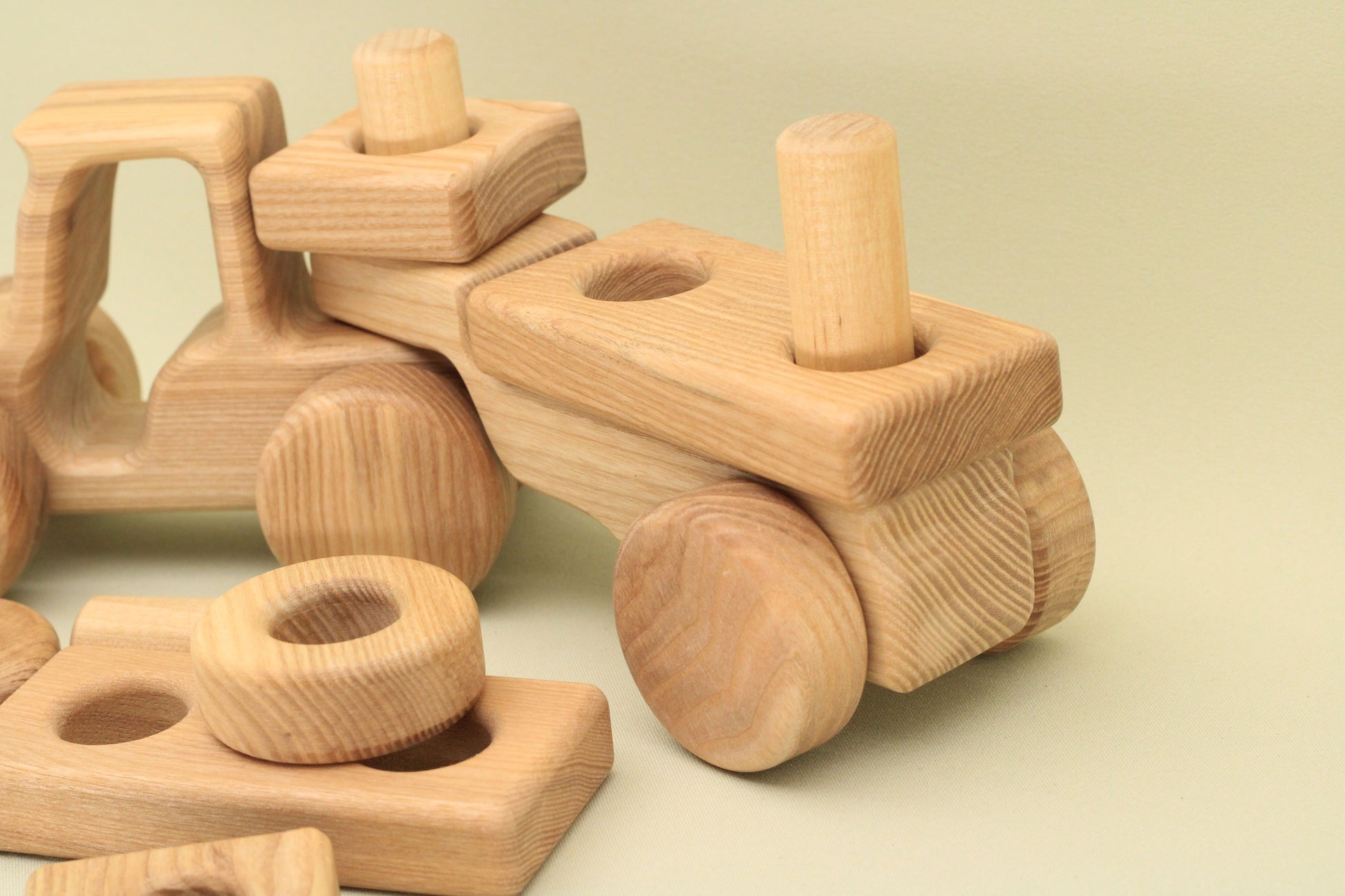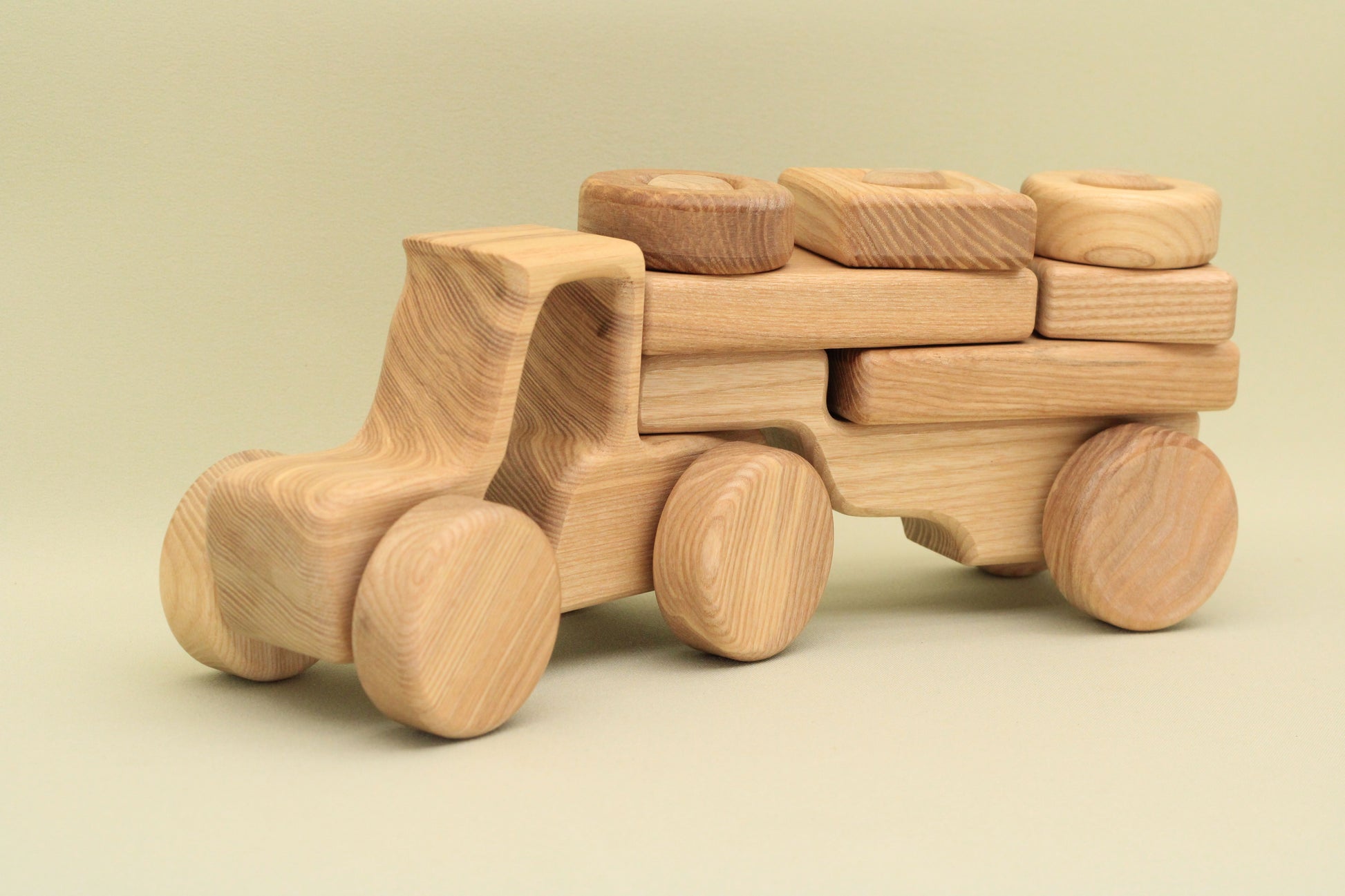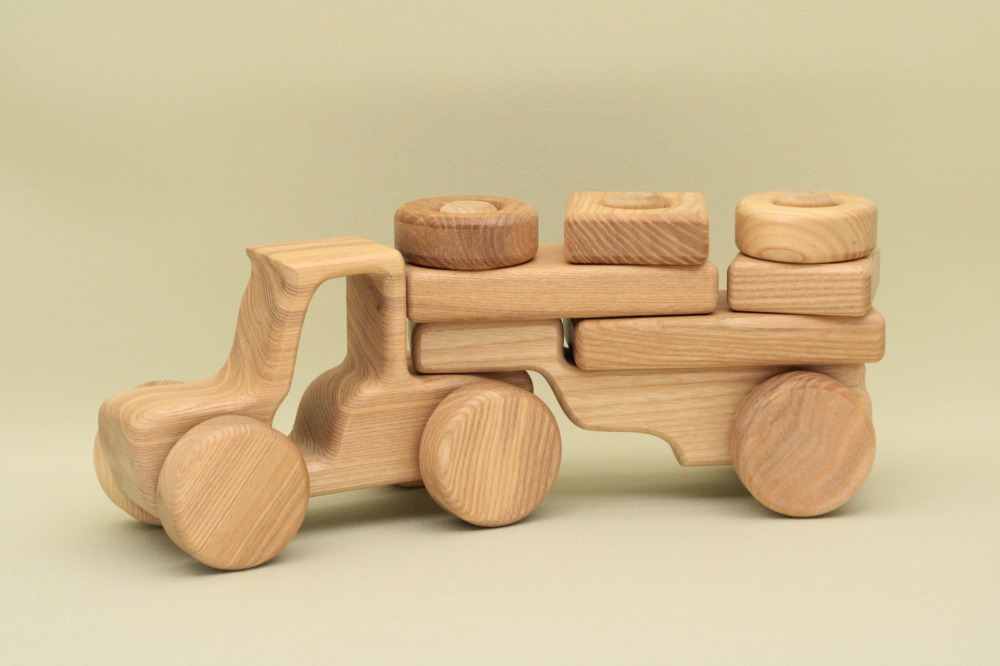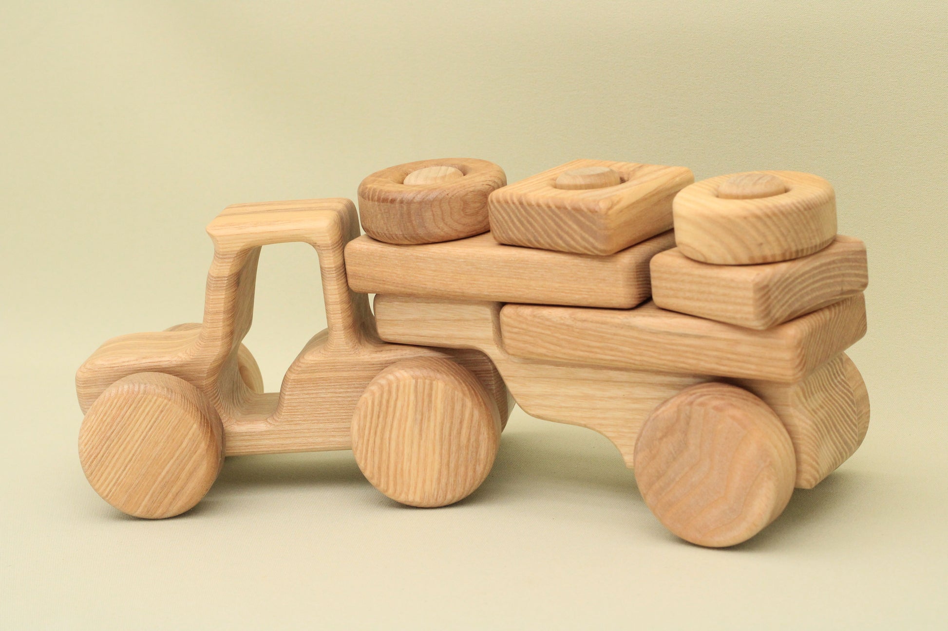 Enliven your child's world with the charm of natural, handmade wood and encourage hours of creative play. Unleash their imagination with this versatile and educational toy. Order your Wooden Stacking and Building Tractor Constructor with Trailer today and watch as they embark on a journey of endless fun and learning.