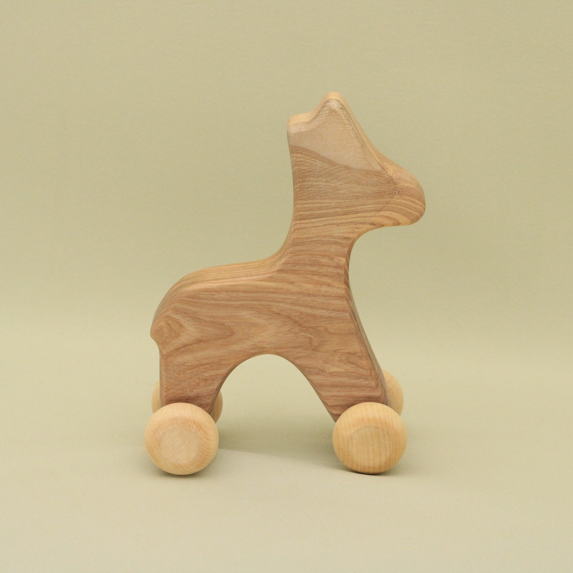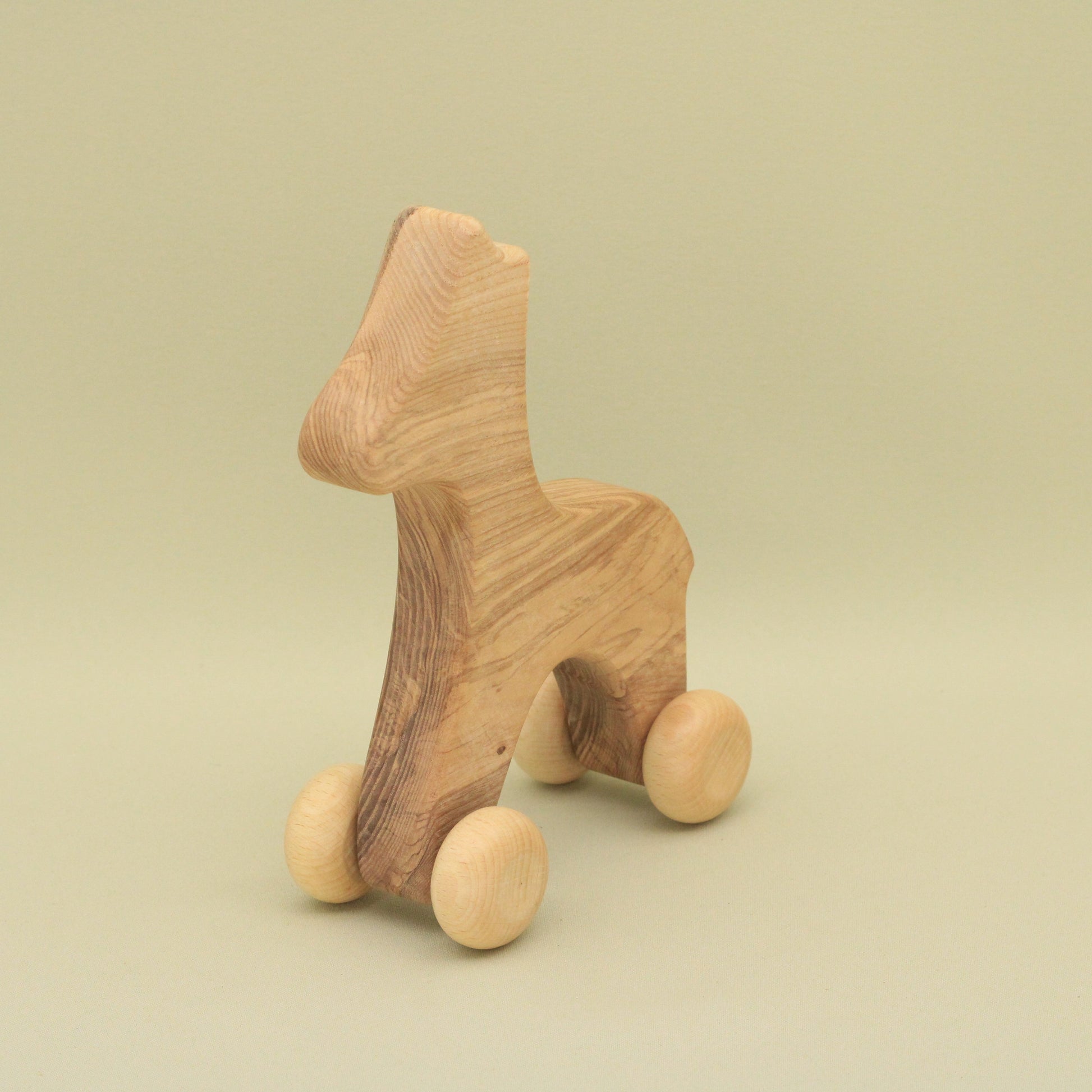 Crafted with care by skilled artisans, each Wooden Wheelie Animal Giraffe is a unique masterpiece, adding a touch of timeless craftsmanship to your child's playtime. The smooth, hand-polished surface ensures a safe and tactile play environment for little hands.