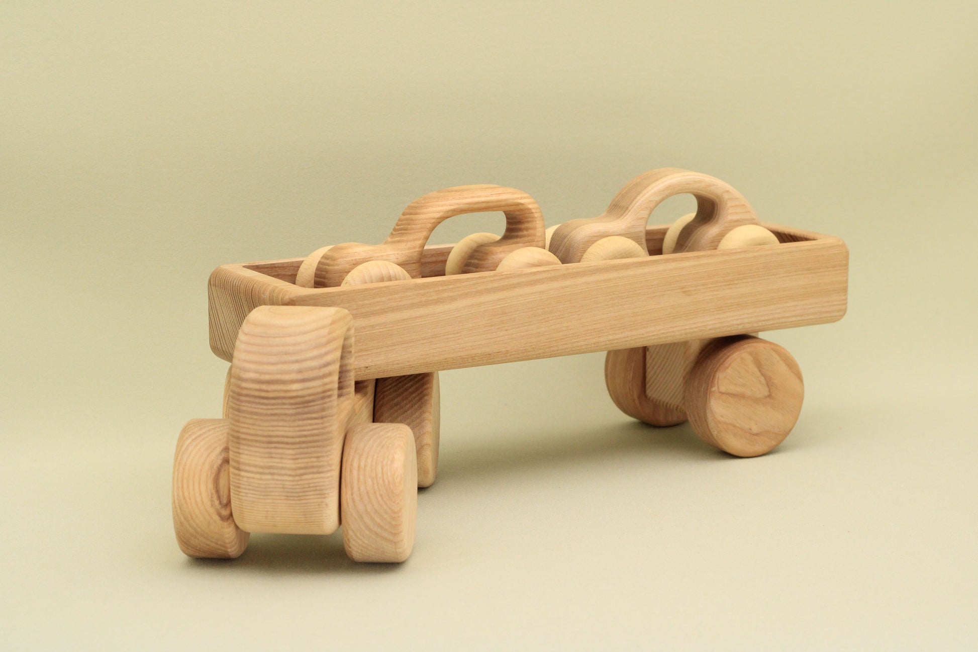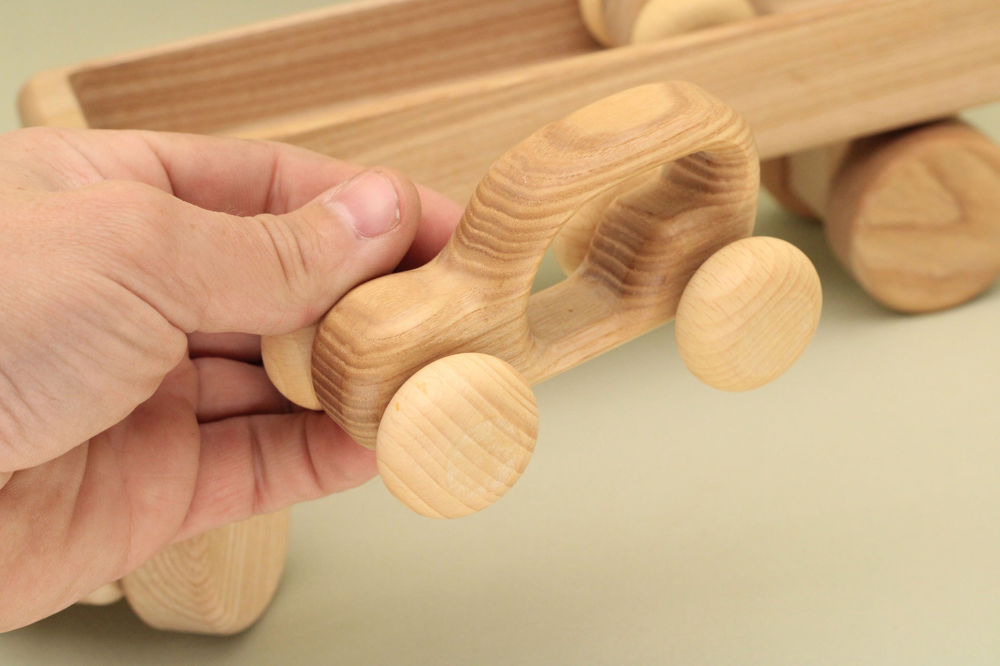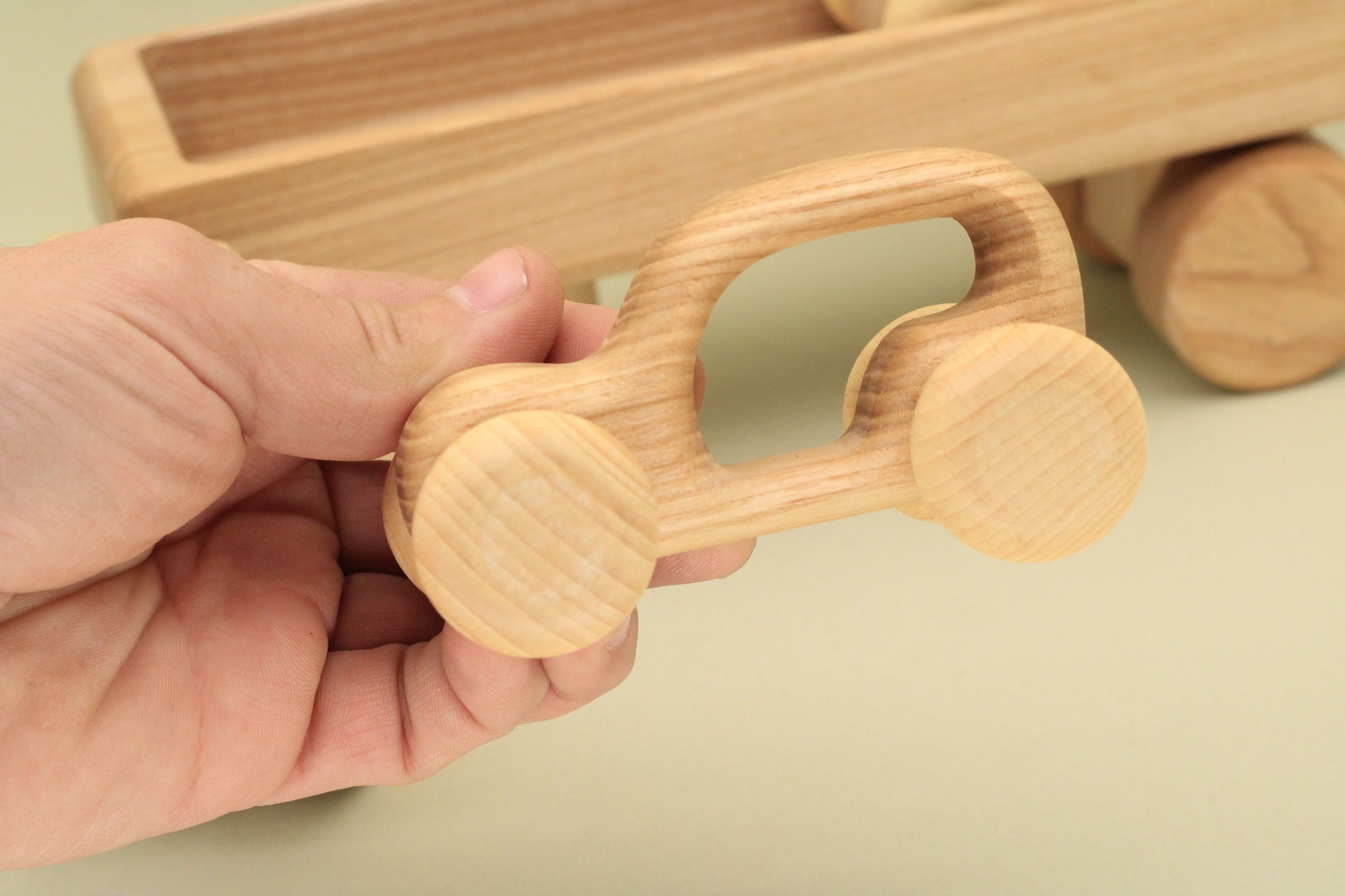 Package Contents: You'll receive one Wooden Car with a detachable Trailer and 2 small cars, sparking joy and curiosity in your child's playtime.