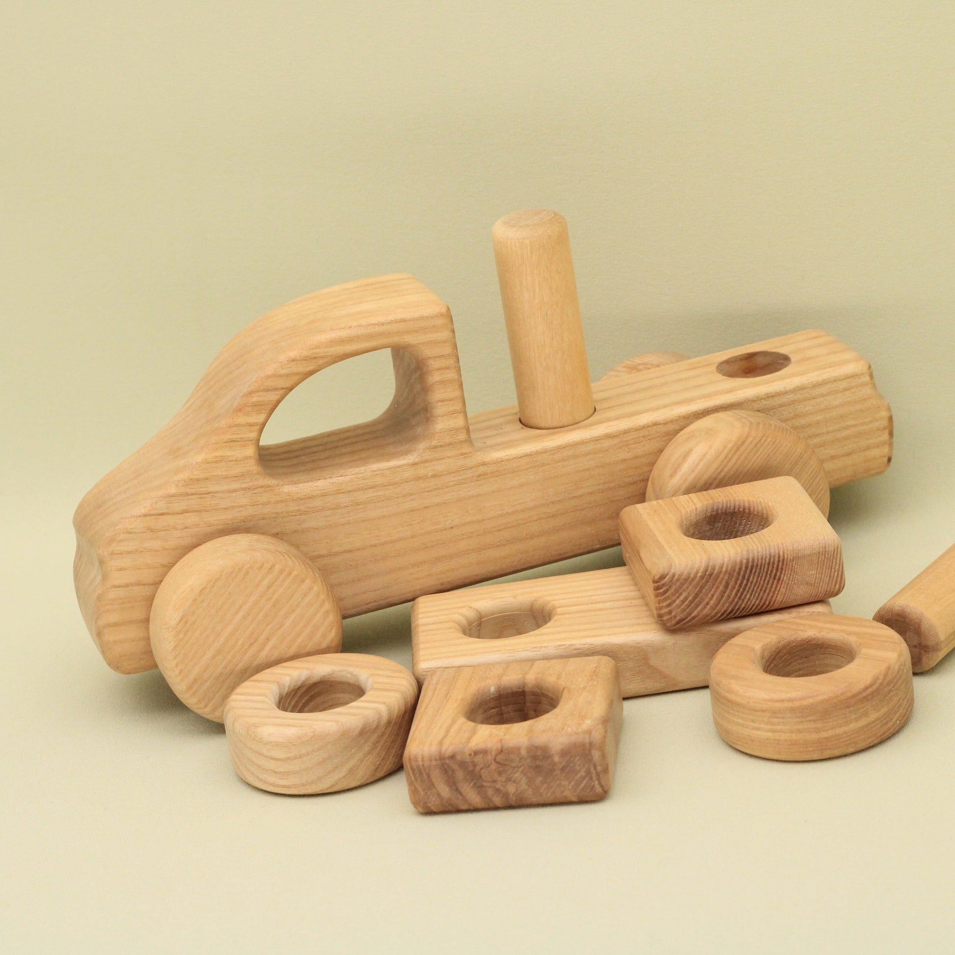 • Educational Vehicles: The car with its detachable trailer provides a dynamic learning experience. Children can engage in stacking, rearranging, and storytelling, fostering creativity and cognitive development with these organic wooden toys.