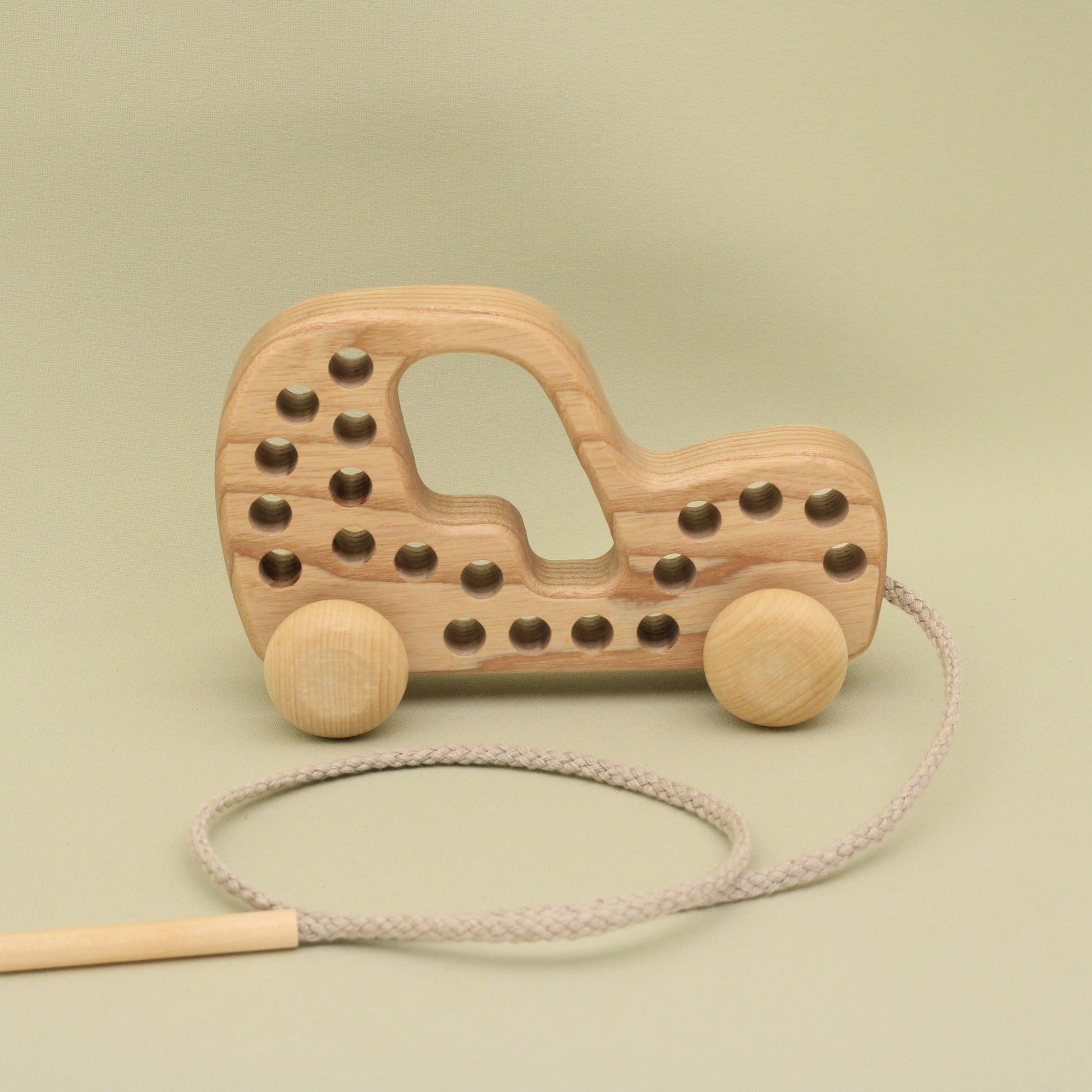 🚗 On Wheels for Adventure: Unleash the joy of movement! The threading wooden toy comes with smoothly rolling wheels, turning the learning process into an exciting adventure. Watch as your little one explores their surroundings, incorporating play and education seamlessly.