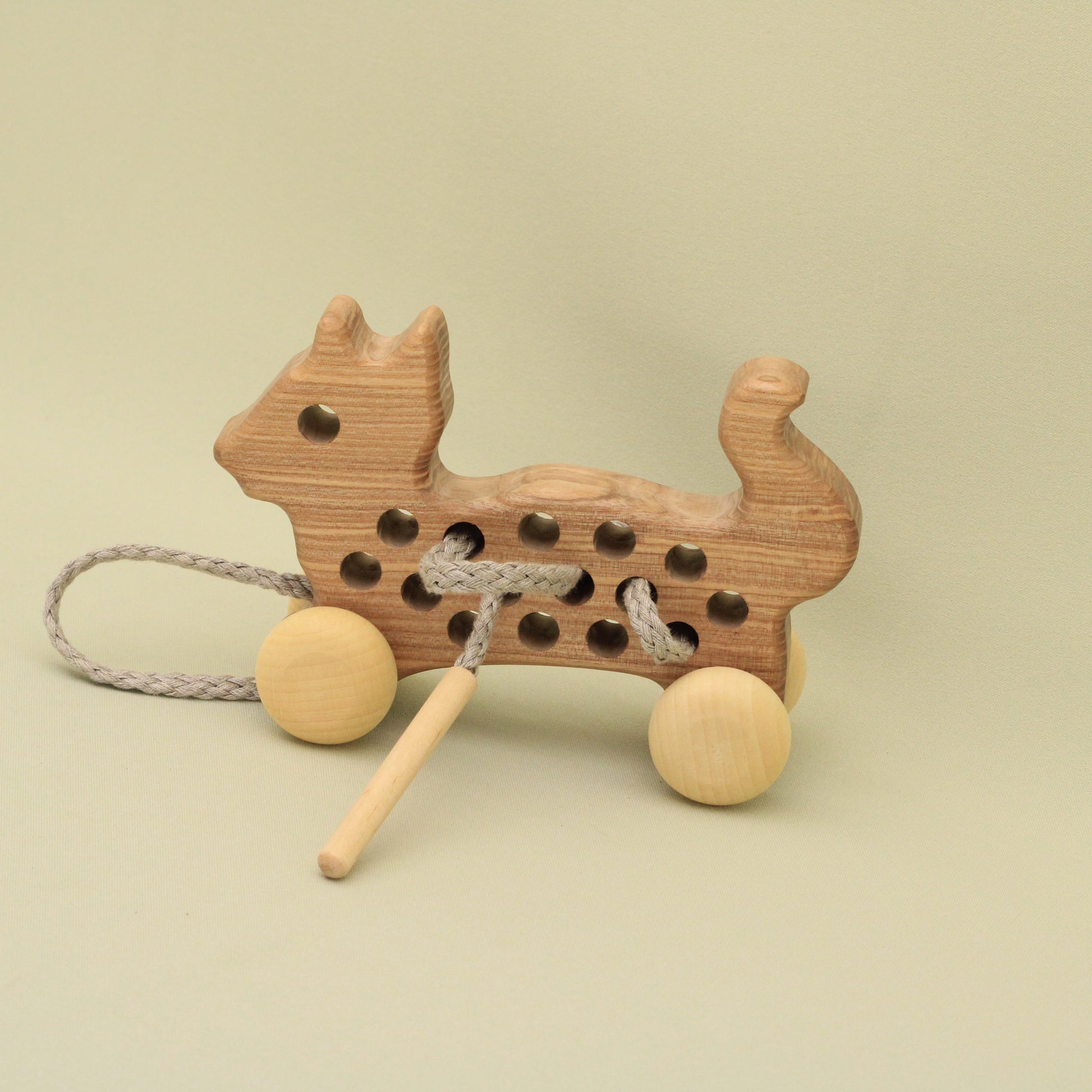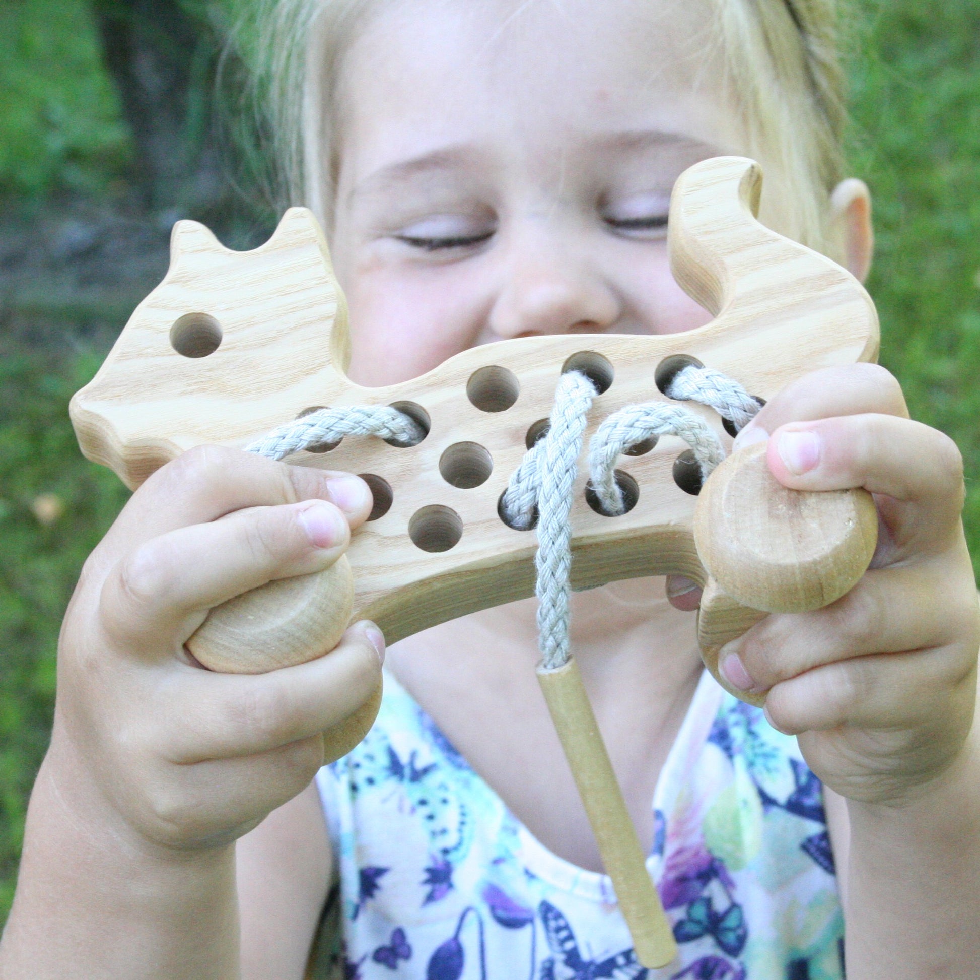 Lotes Toys Natural Wooden Threading Lacing Cat TT42