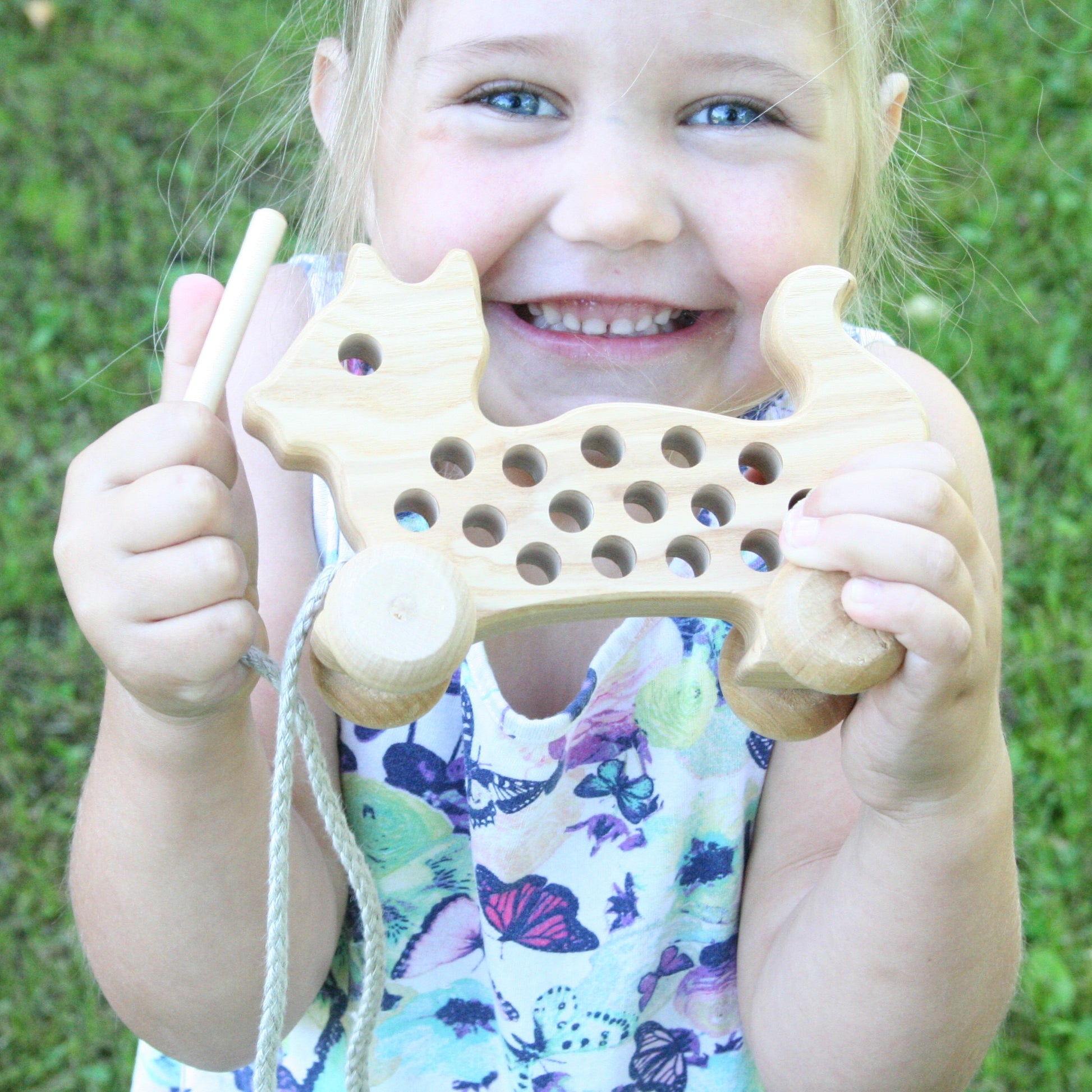 Bring the magic of learning and play together with our Handmade Wooden Eco-Friendly Educational Learning Threading Toy on Wheels. Unleash the boundless potential within your child as they embark on a journey of discovery, curiosity, and skill development.
