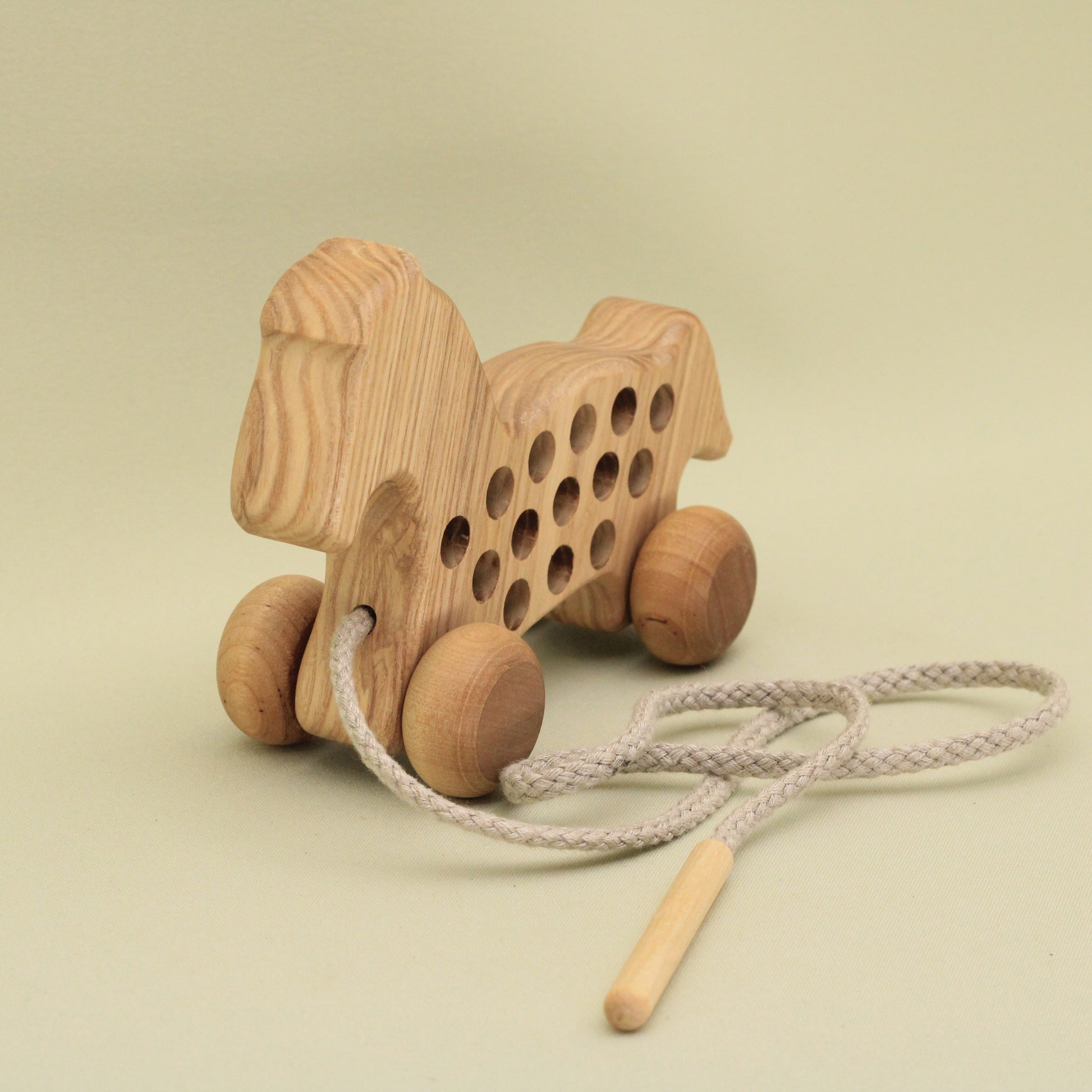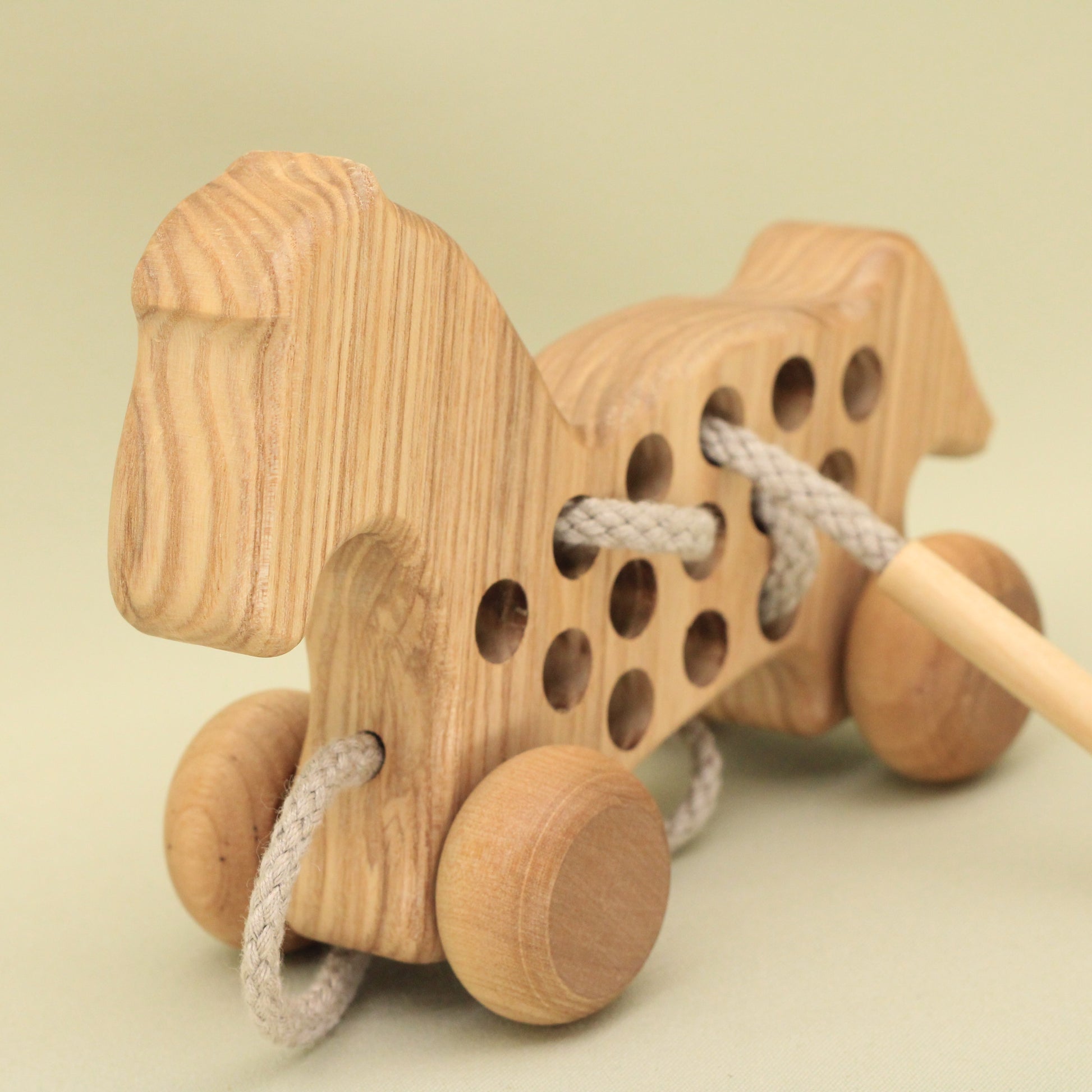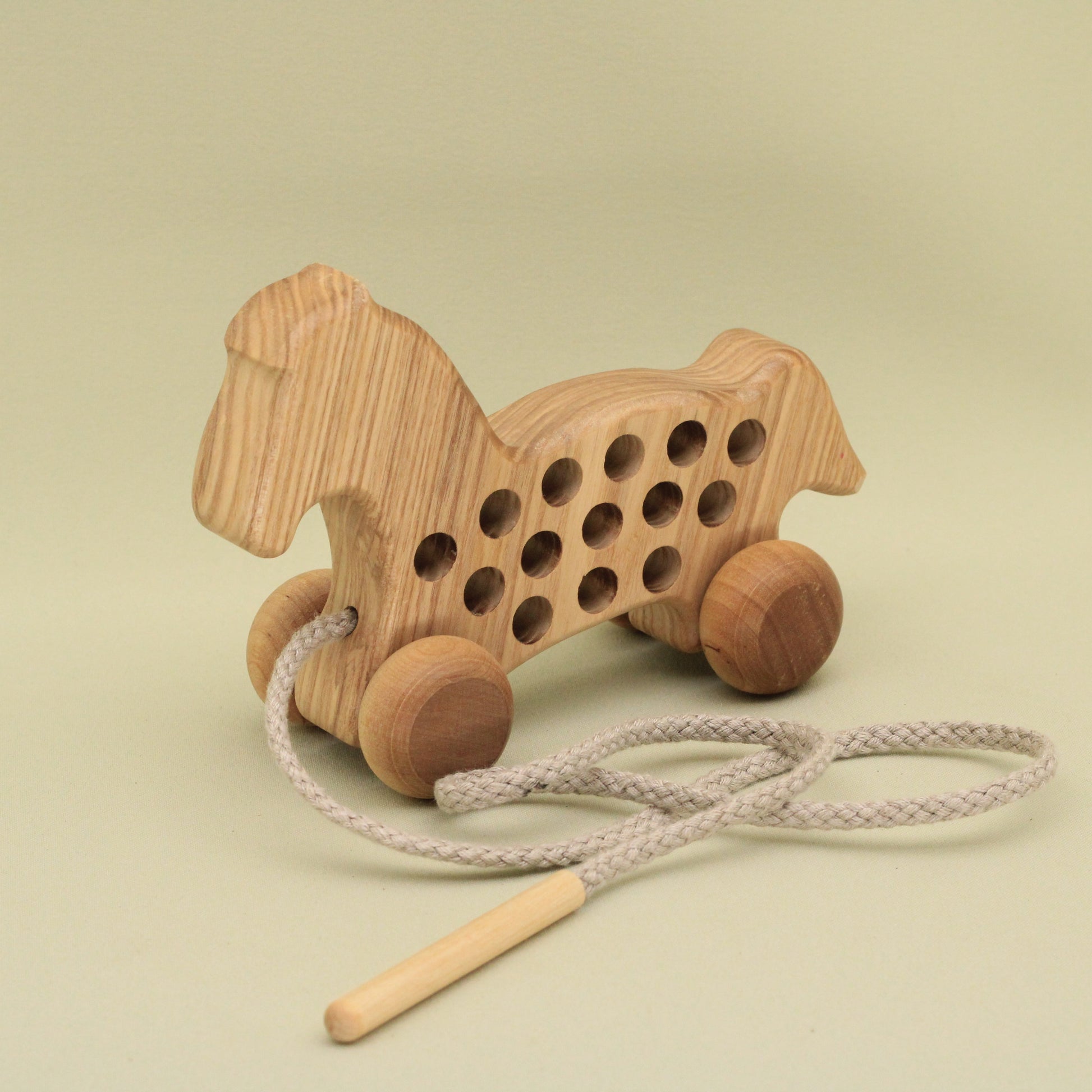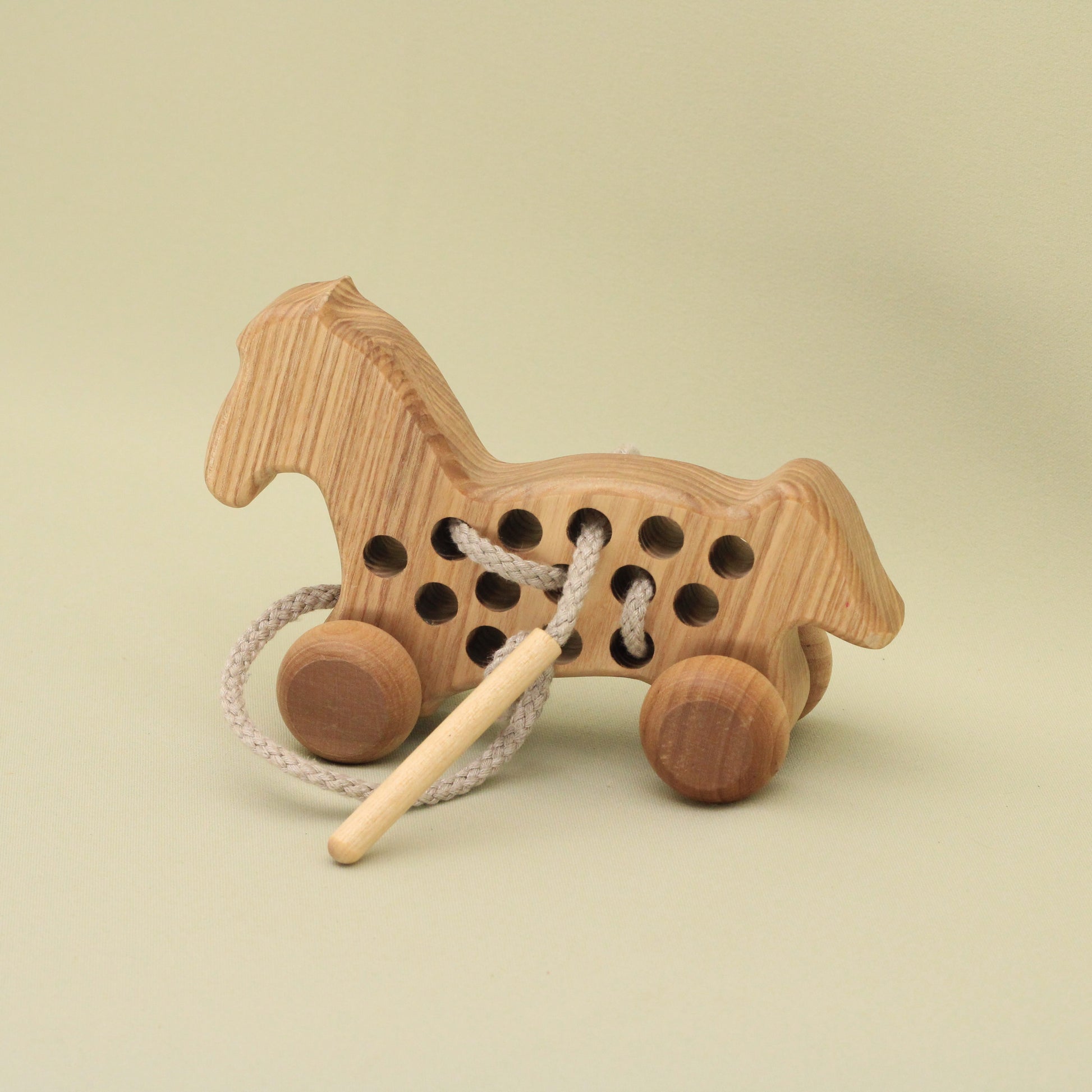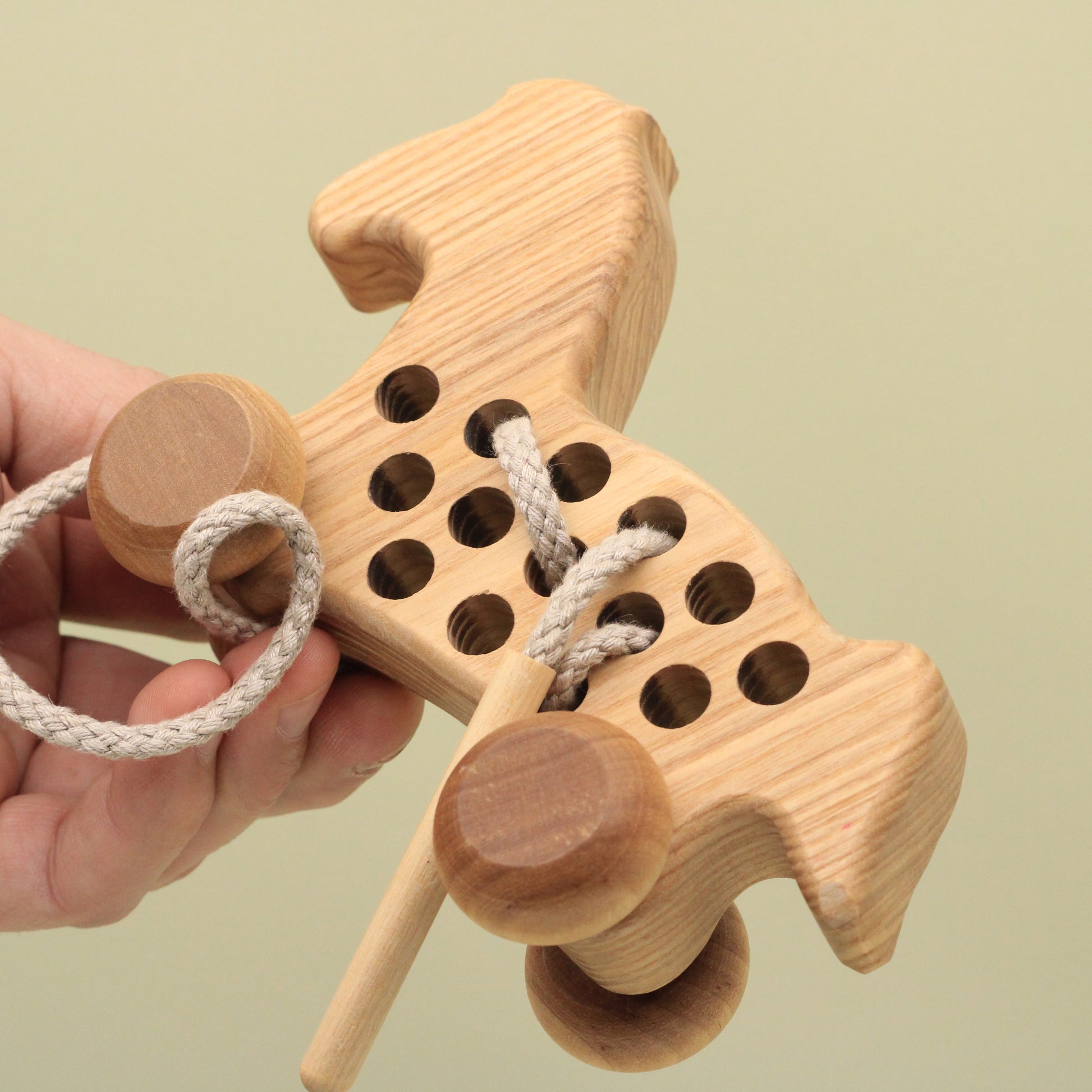 Lotes Toys Natural Wooden Threading Lacing Horse TT44