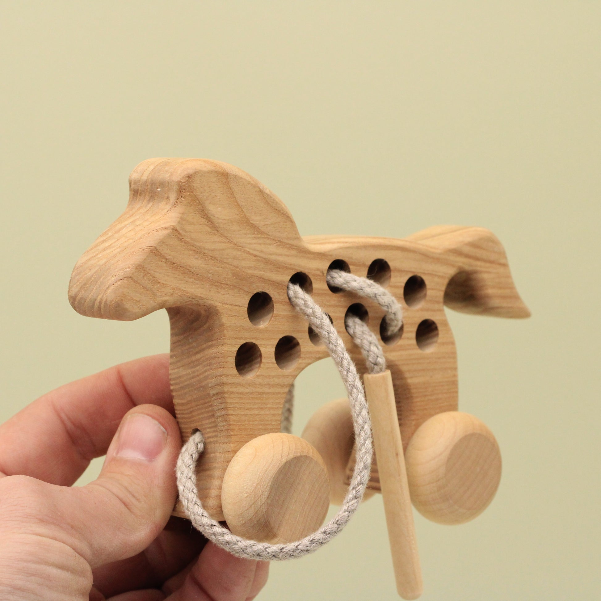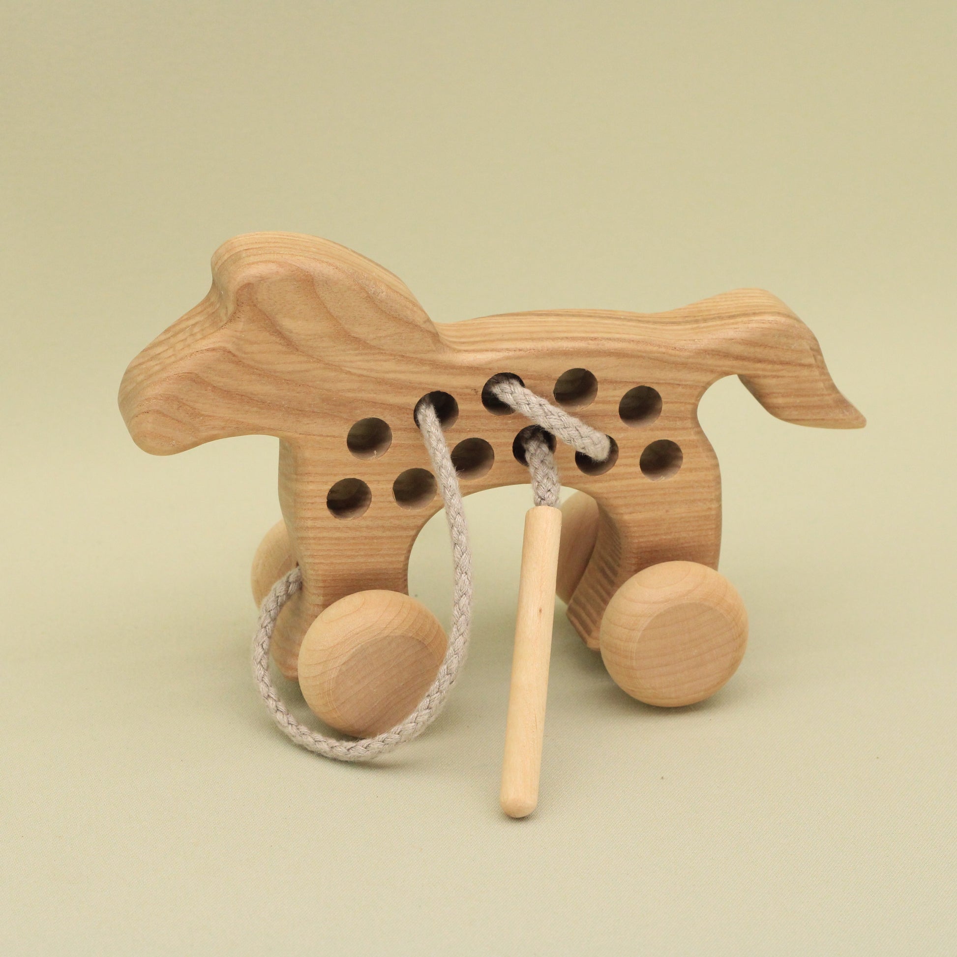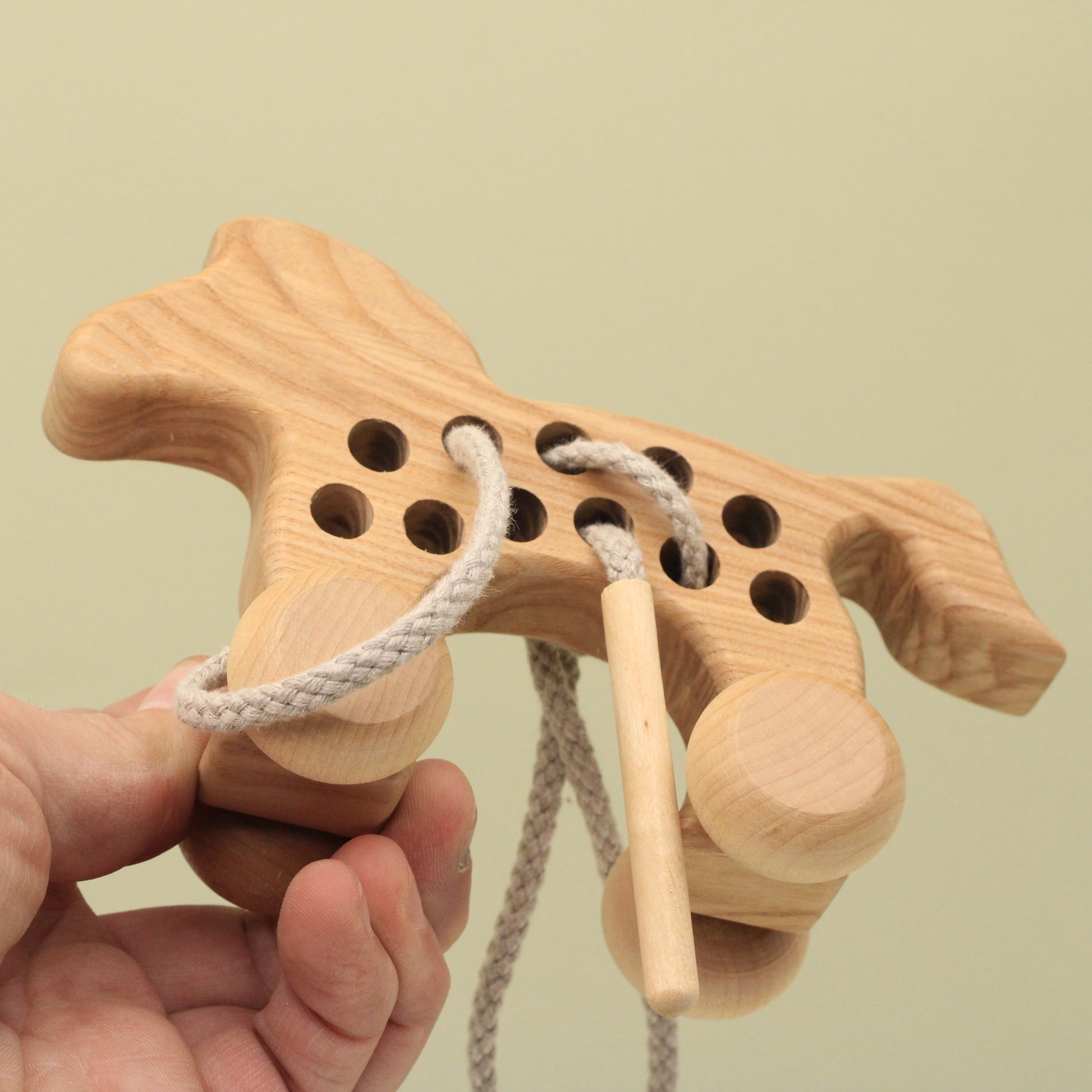 Lotes Toys Natural Wooden Threading Lacing Horse TT54