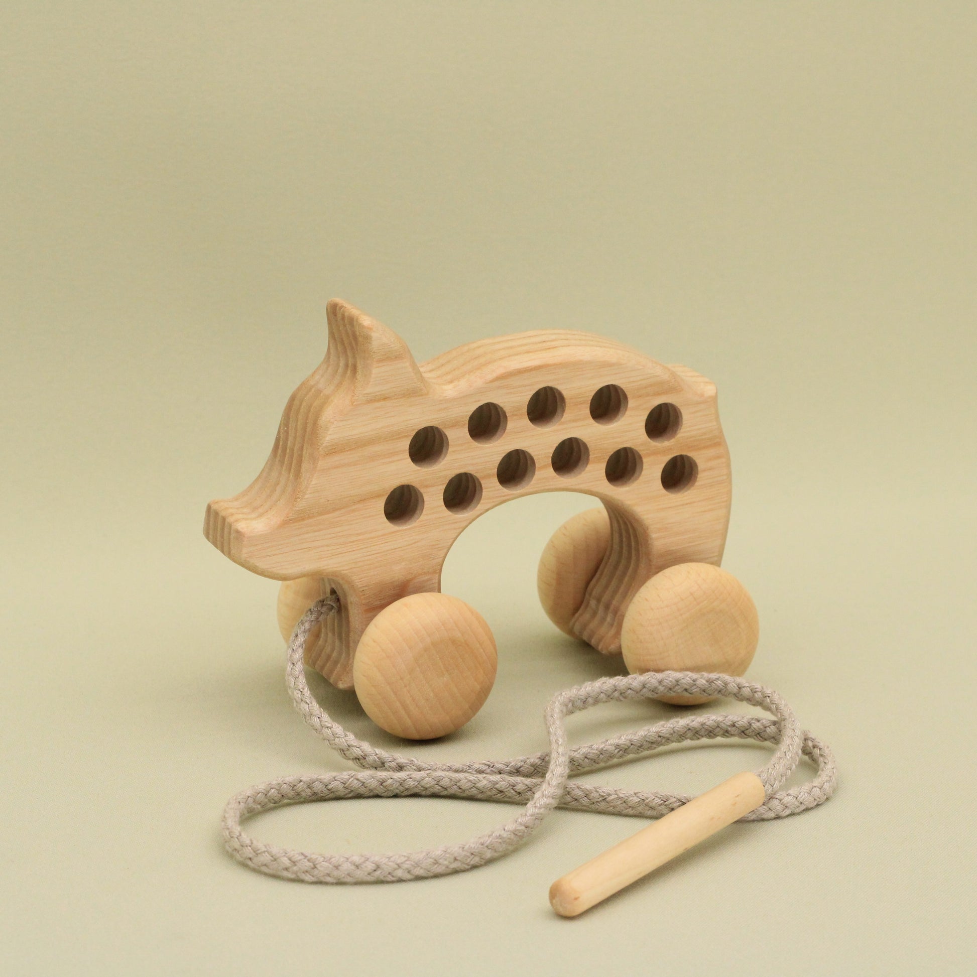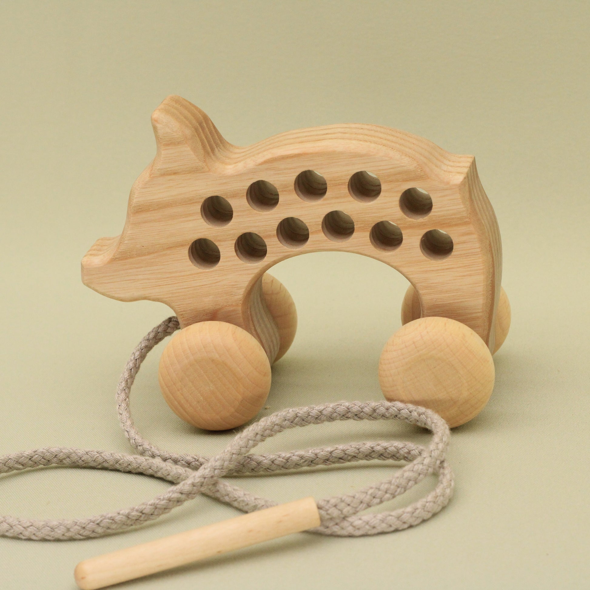 Lotes Toys Natural Wooden Threading Lacing Piglet TT55